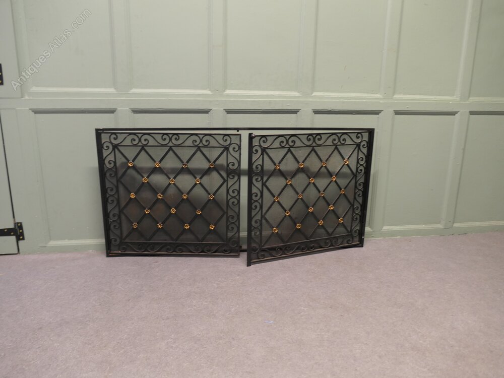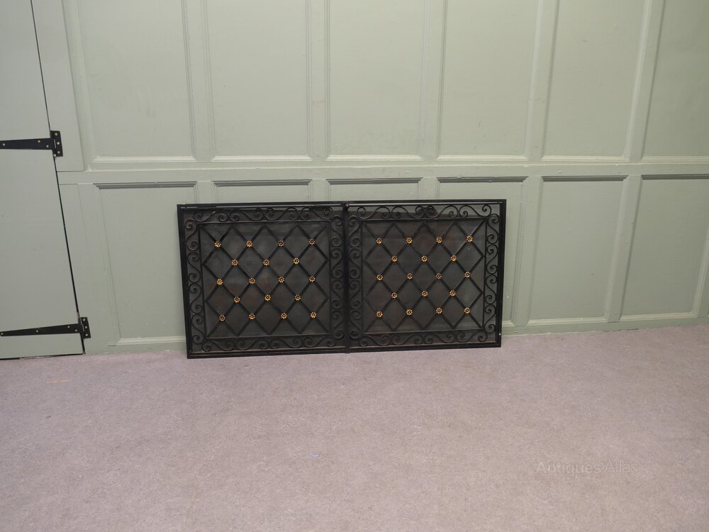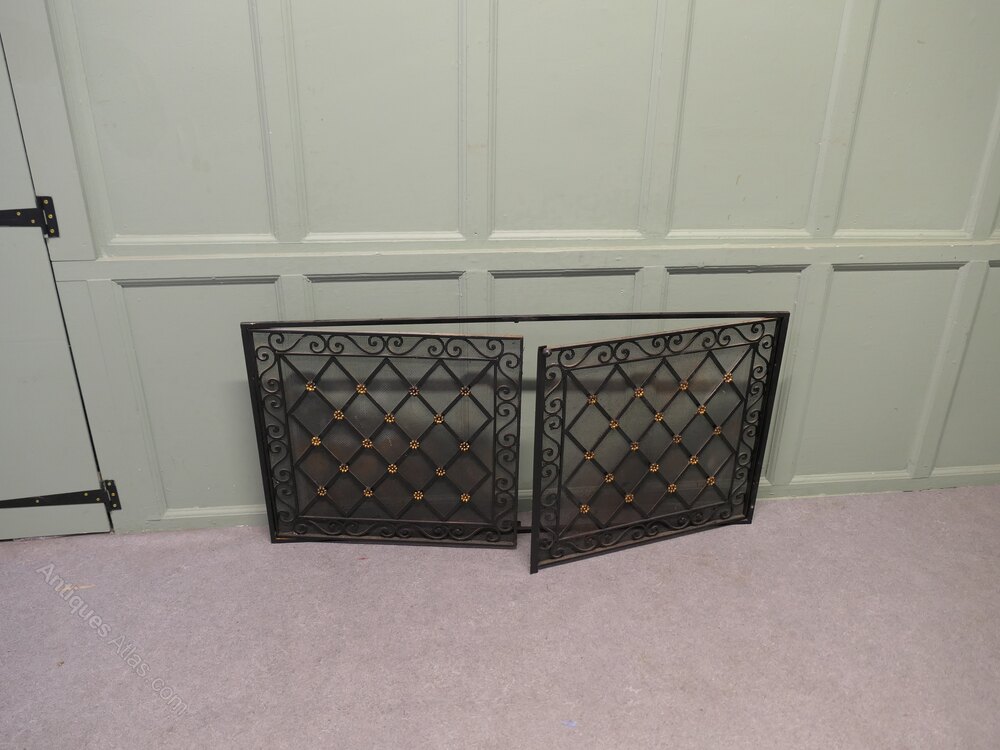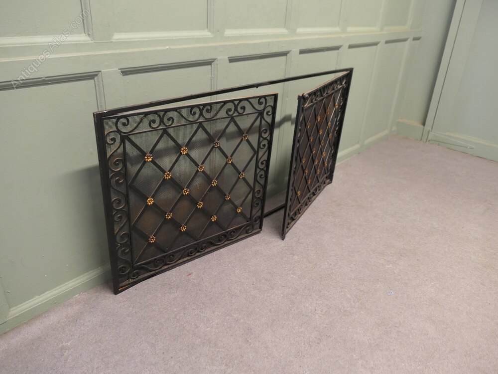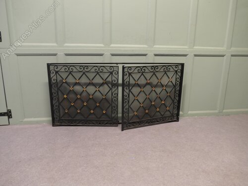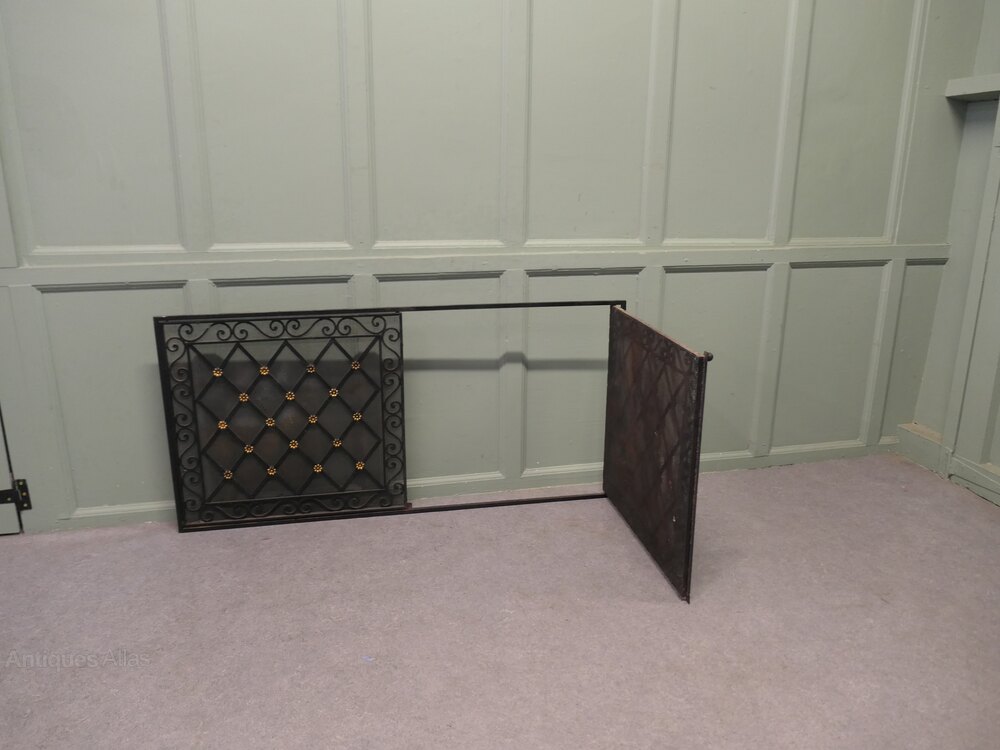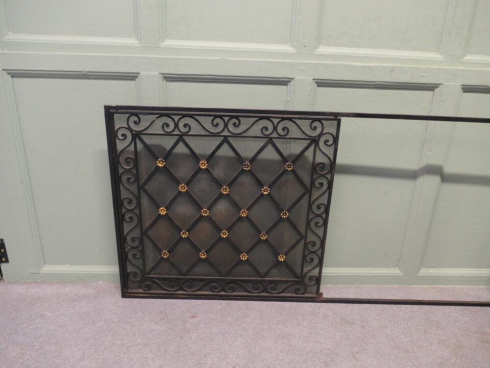 Large Fixed Wrought Iron Fire GuardThe Frame of this sturdy Fireguard fixes to the wall and opens out to both sides from the centre