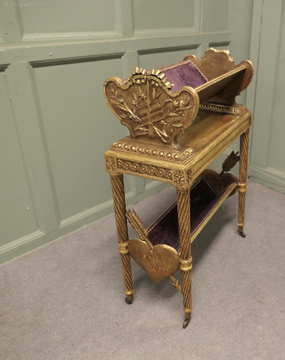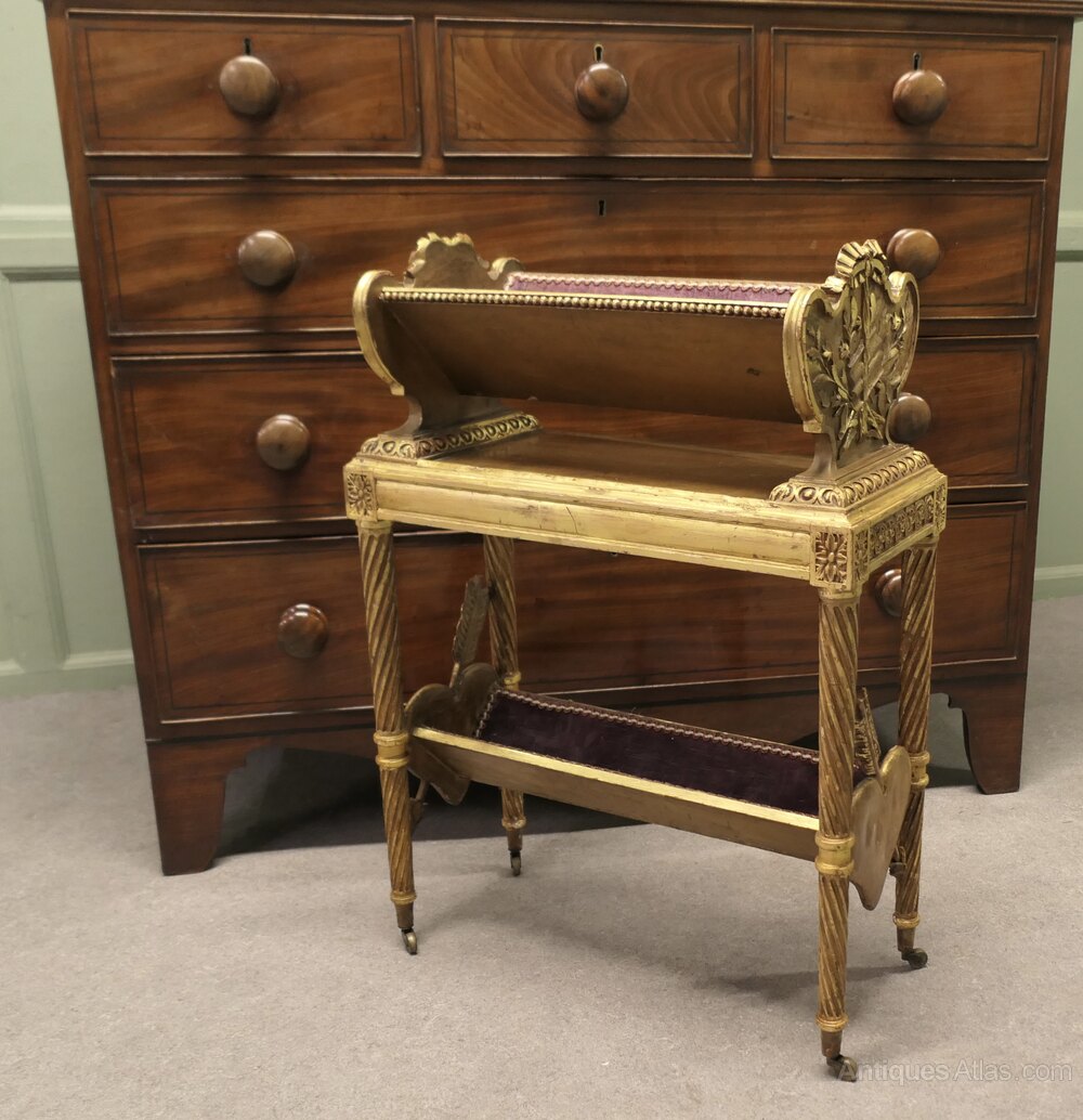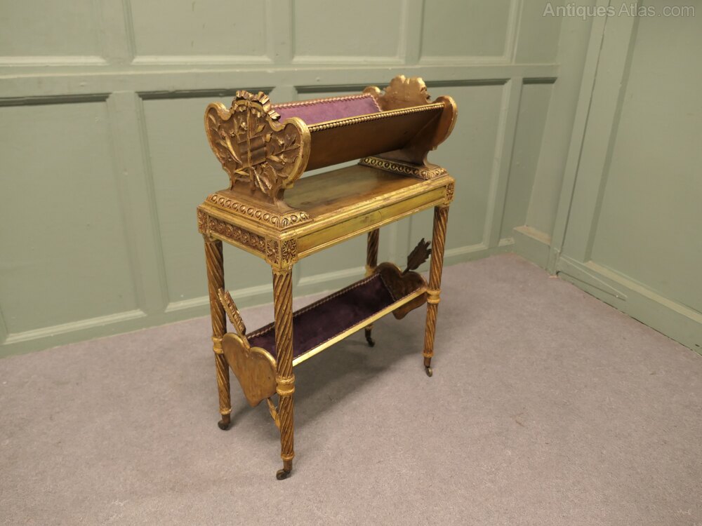 Italian Rococo 2 Tier Gold Book TroughThis is a very romantic piece the carved gilded sides have representations of old books and hearts pierced with arrows at each side