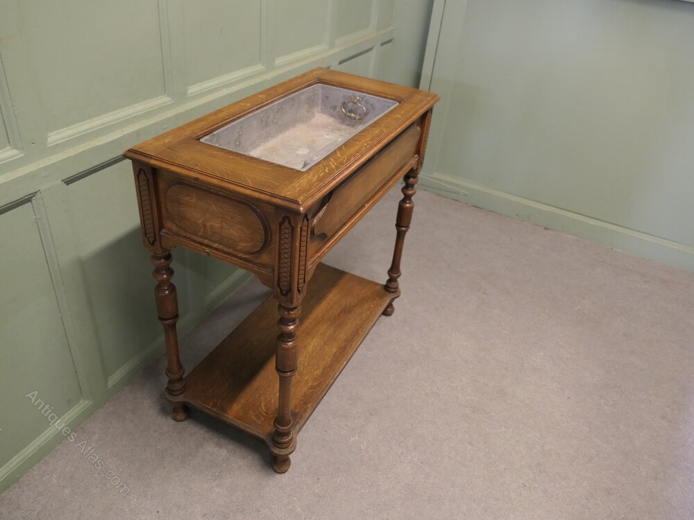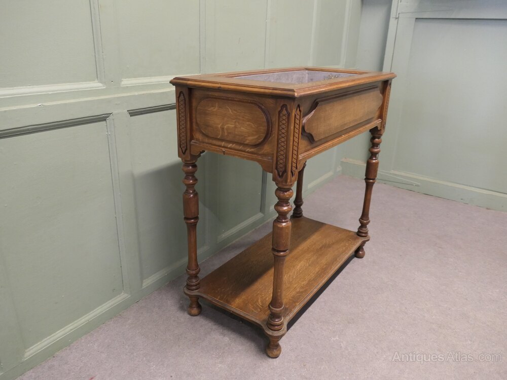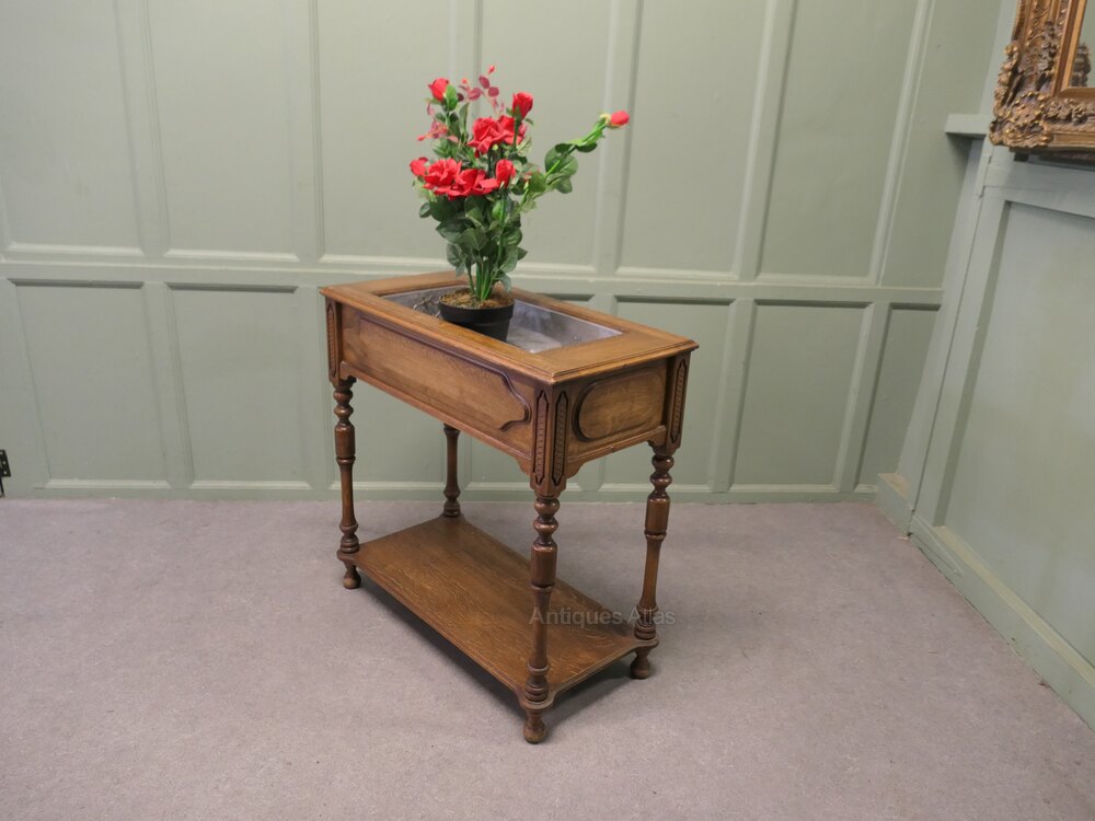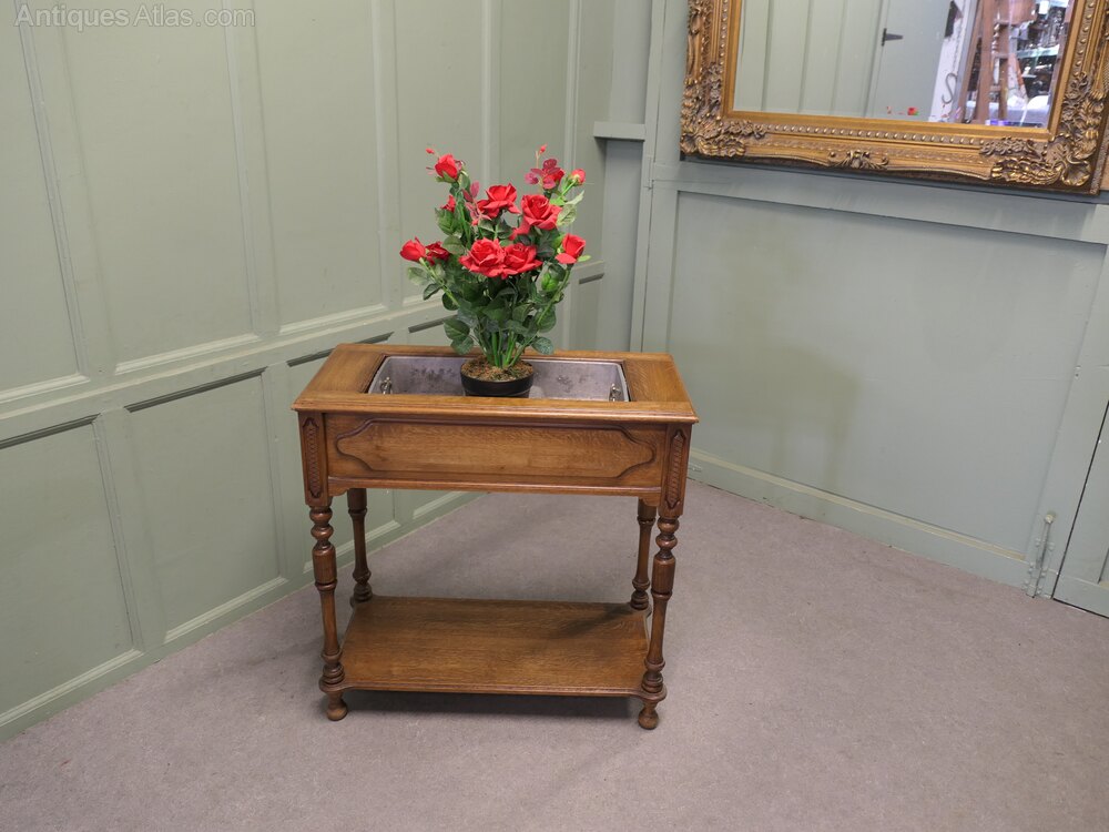 French Arts and Crafts Golden Oak, Lined JardinièreThe planter is made in Oak it has turned legs supporting a rectangular box planter which has its original liner and there is a shelf at the bottom