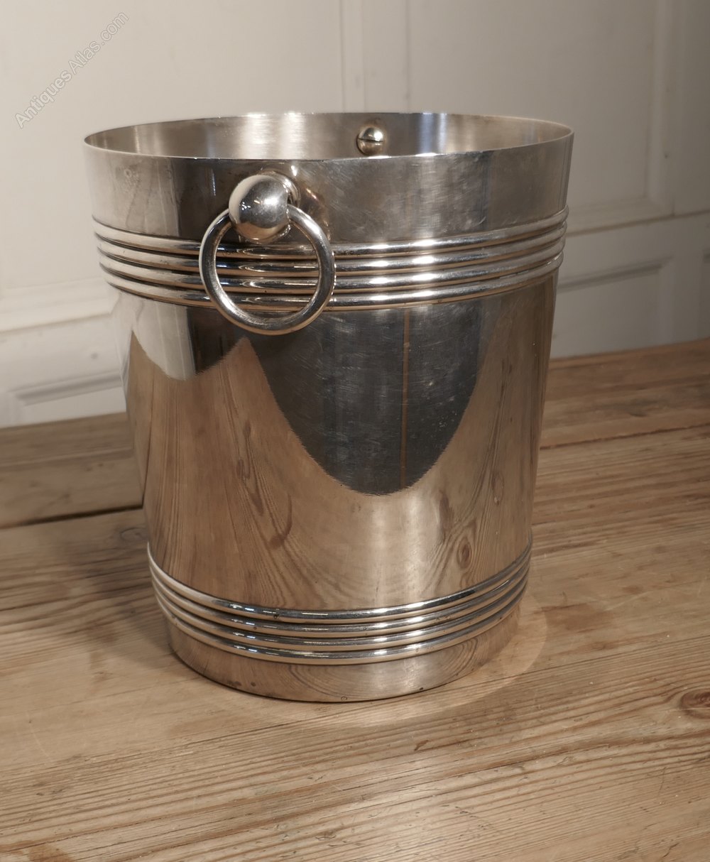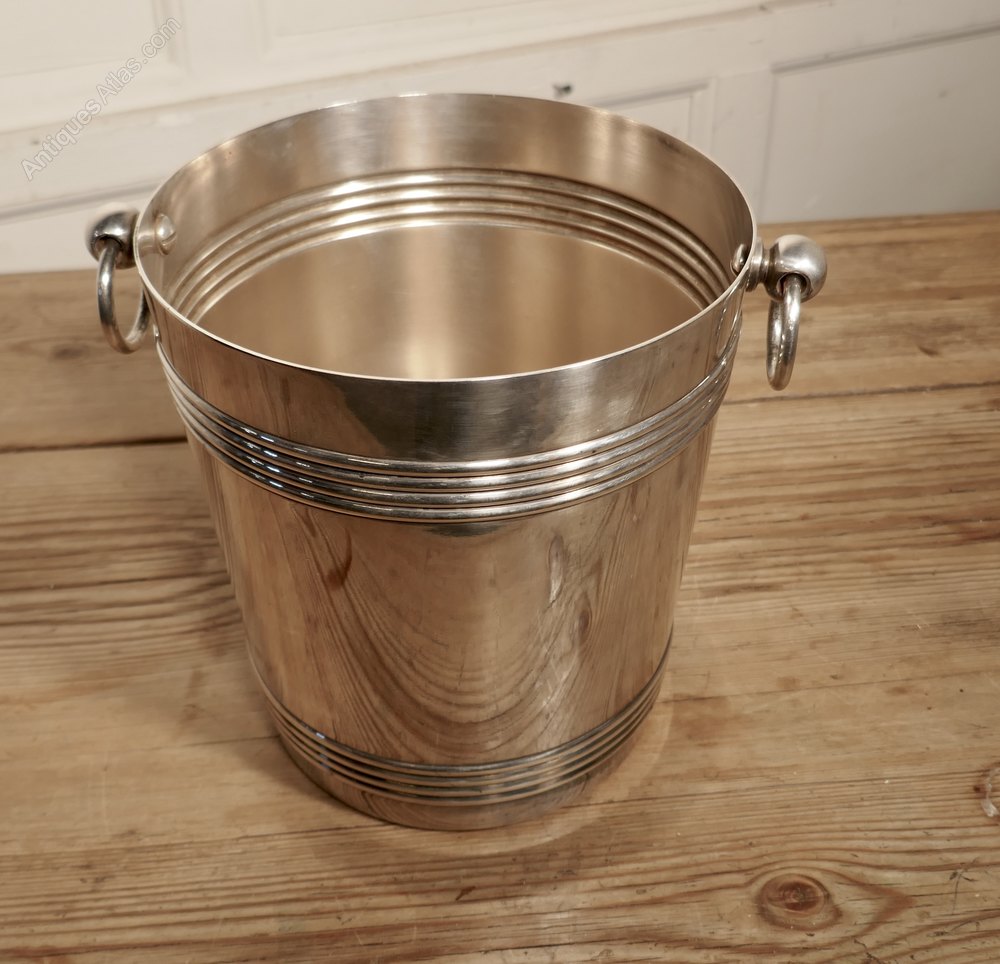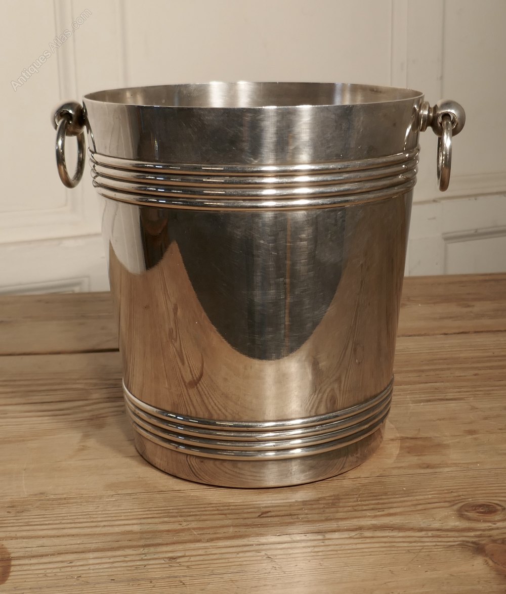 A Fine French Art Deco Style Wine Cooler, by GalliaA very attractive Vintage Ice Bucket in French Silver Plate by Galia, the cooler is straight sided, and has ring handles with a decorative reeding and around both top and bottom