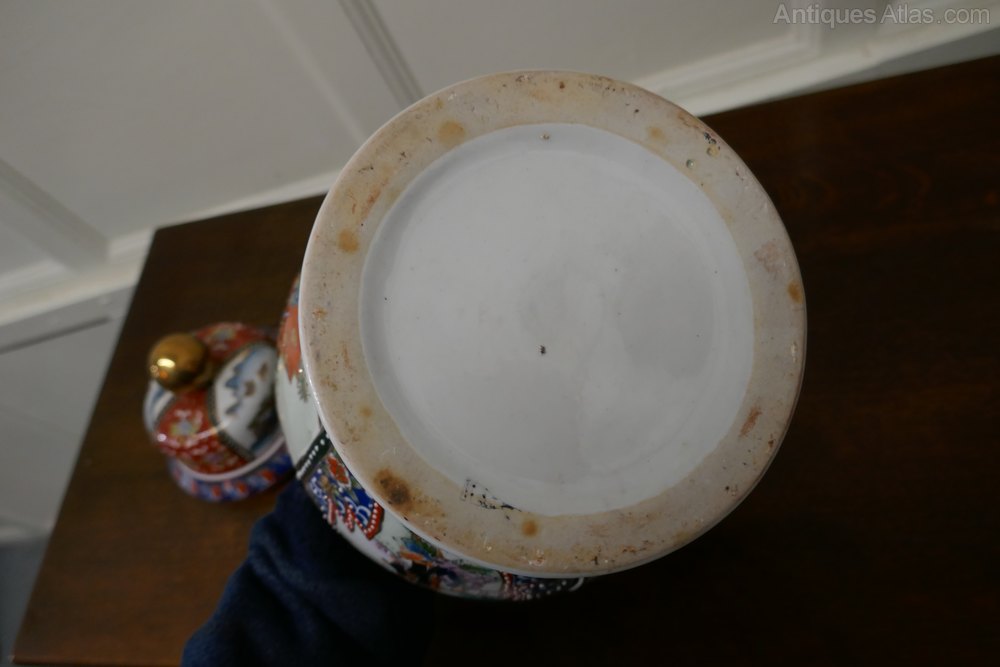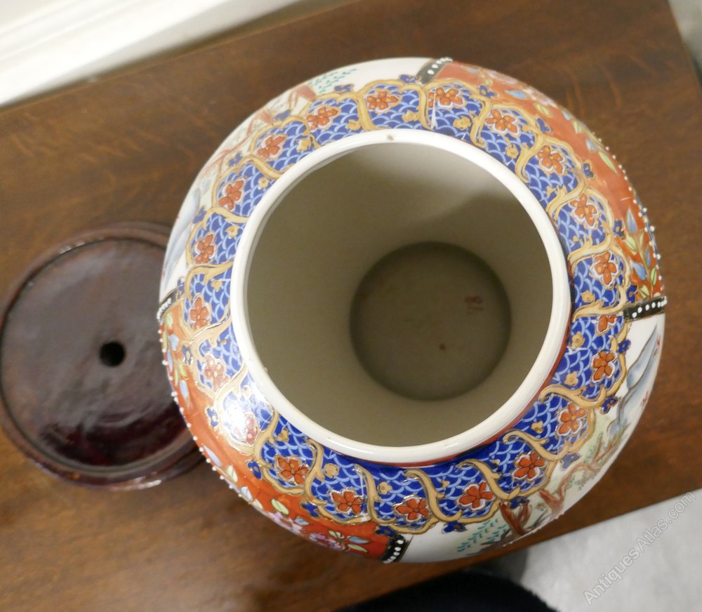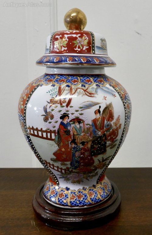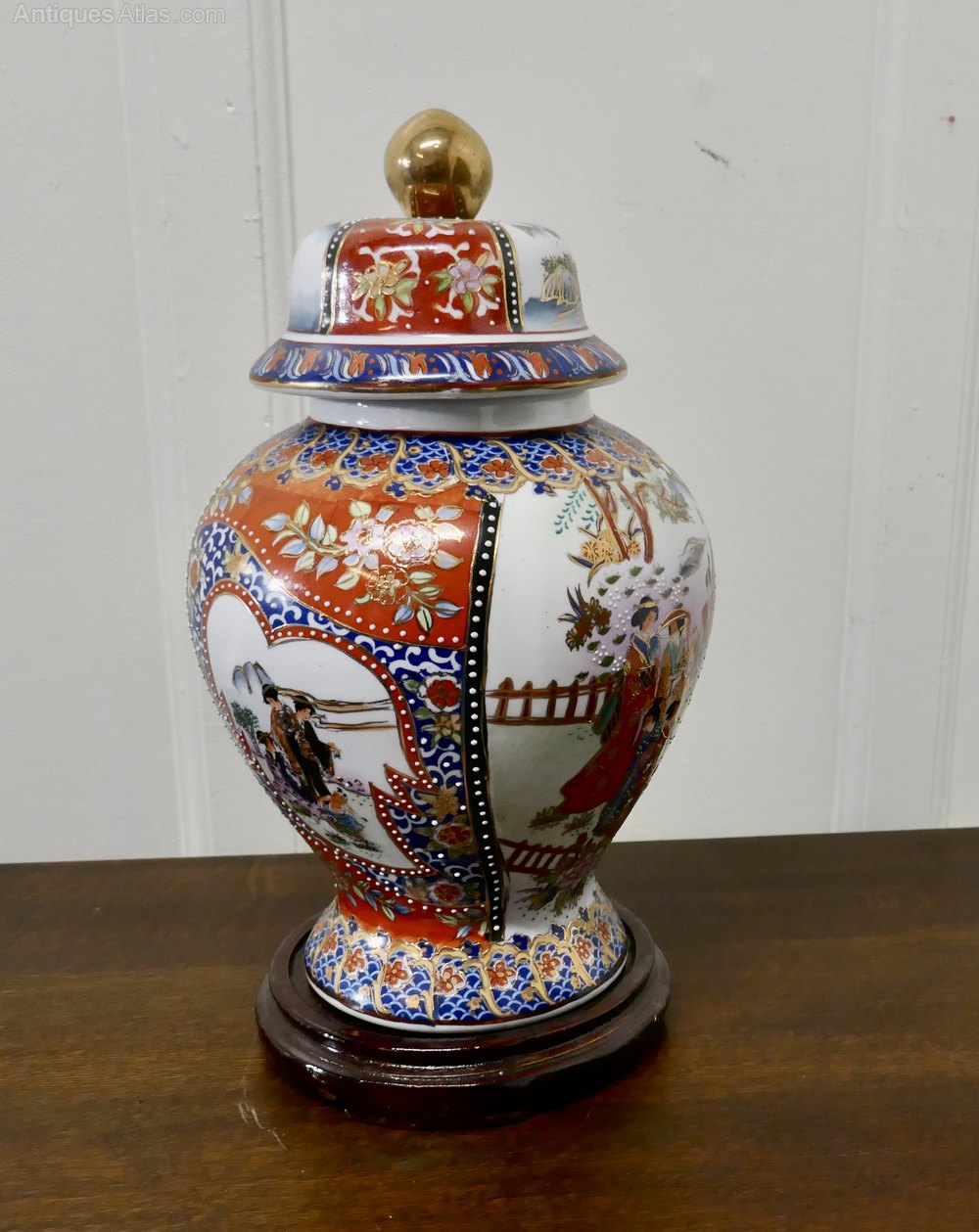 Large Decorative Oriental Ginger or Spice Jar on StandA delightful piece, tall, very bright with fine decorative detail