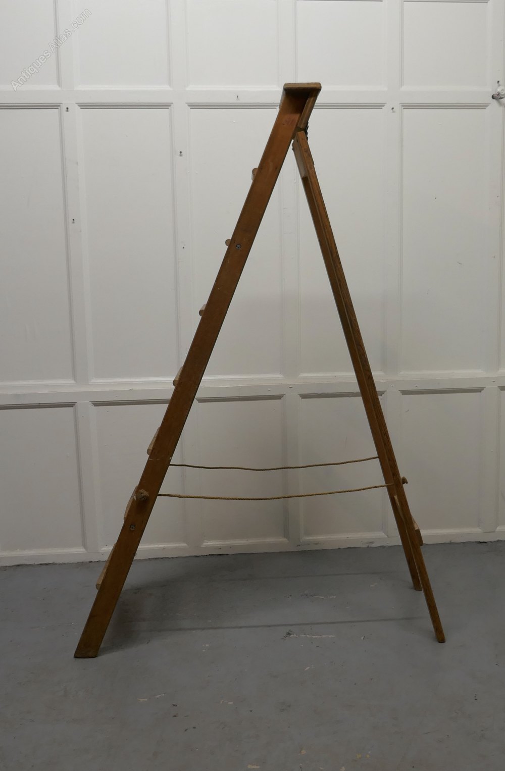 This is a sturdy piece made in beech there are 7 ridged steps and a top platform, the steps make a superb useful and decorative piece anywhere where sturdy extra height is needed, they fold away when not needed
