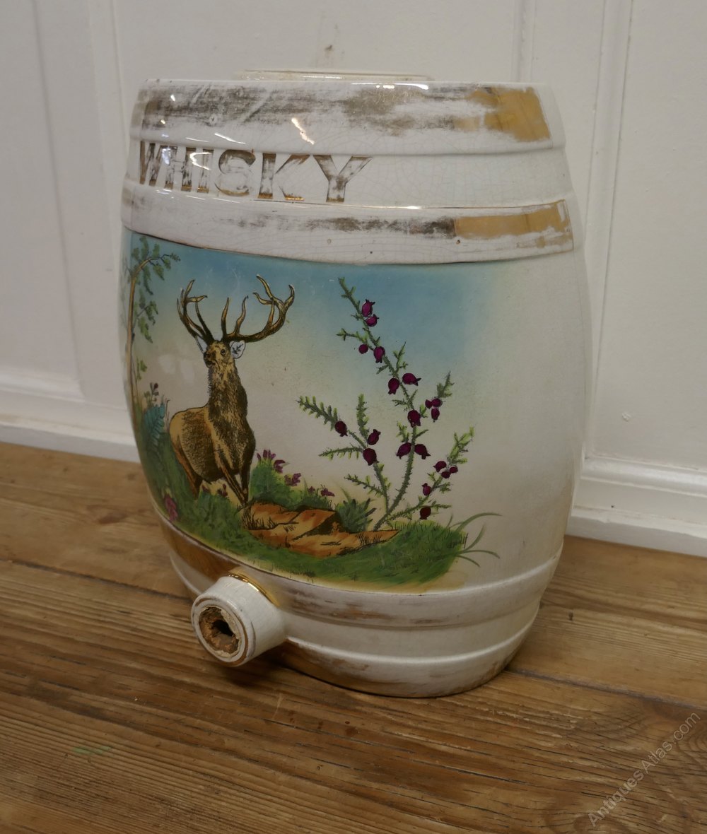 Large Painted Ceramic Scotch Whiskey Barrel, Stag at BayAn attractive and colourful piece, in good used condition, the ceramic lid has been repaired