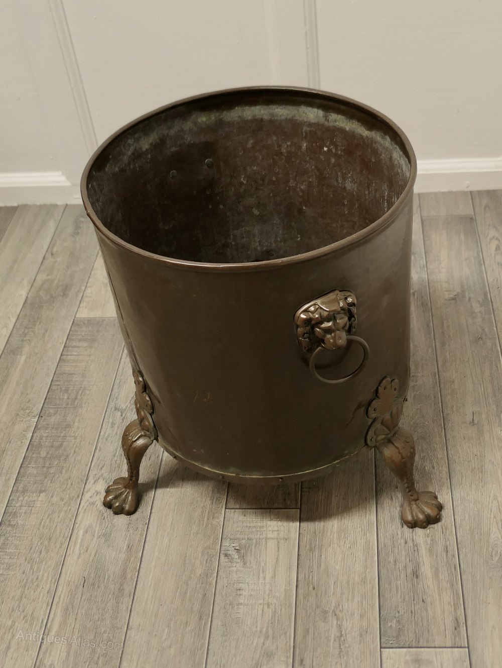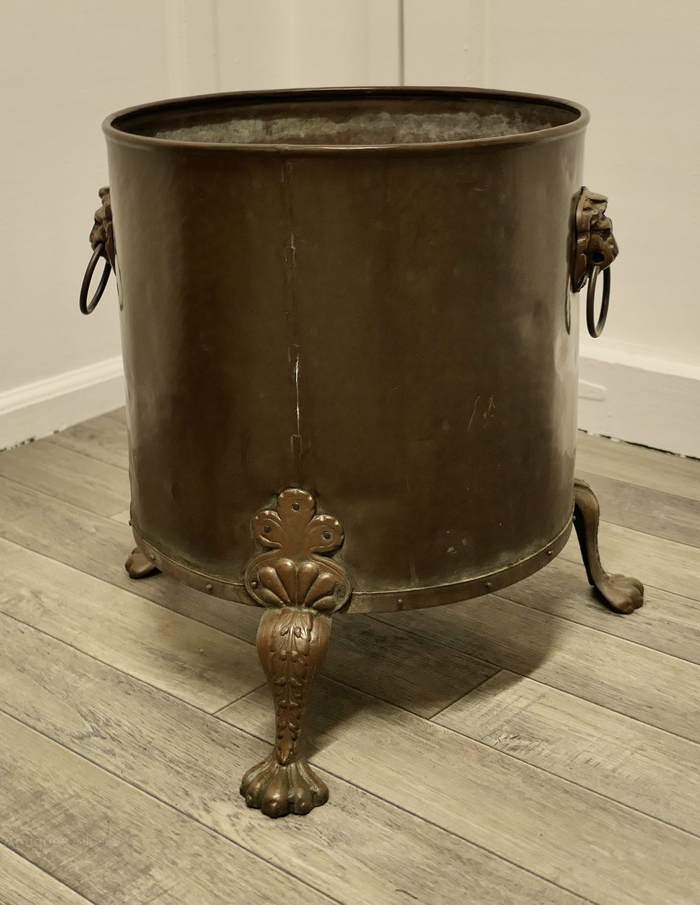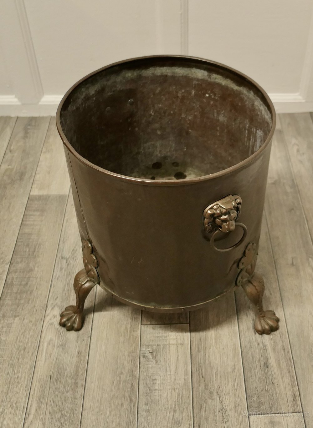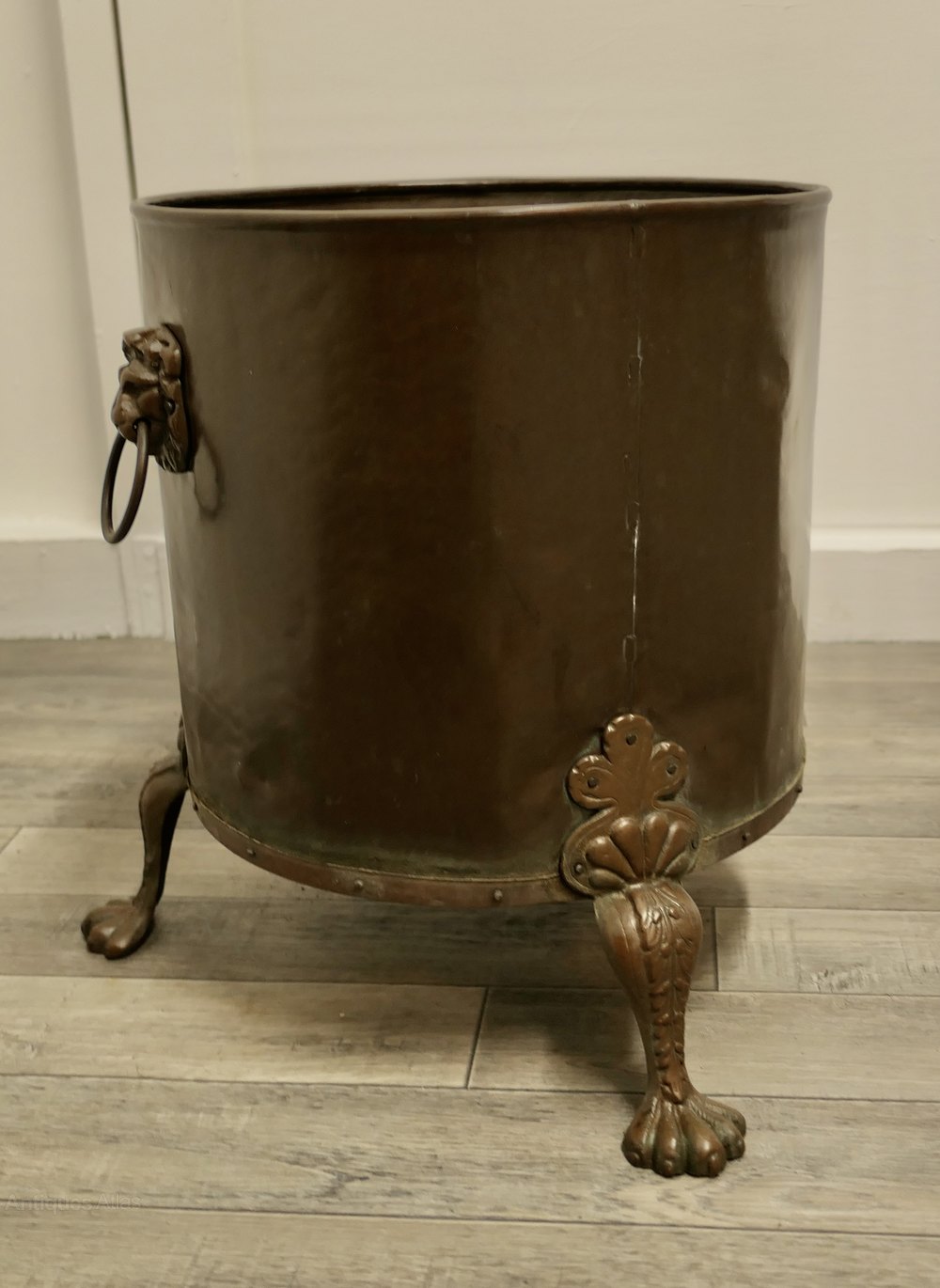 19th Century Copper Coal or Log Bucket on Lions Paw FeetThis is a lovely looking 19th Century bucket it has a riveted base with lions paw feet and Lions mask ring handles