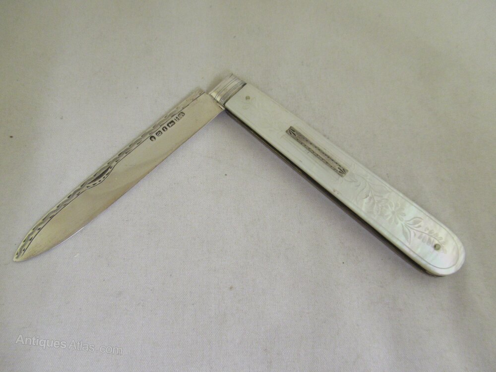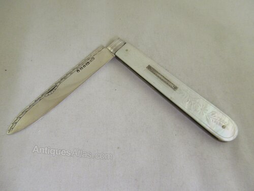 Silver & Mother of Pearl, early Victorian Fruit KnifeHallmarked for Sheffield 1852 - date letter - I