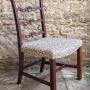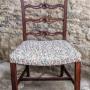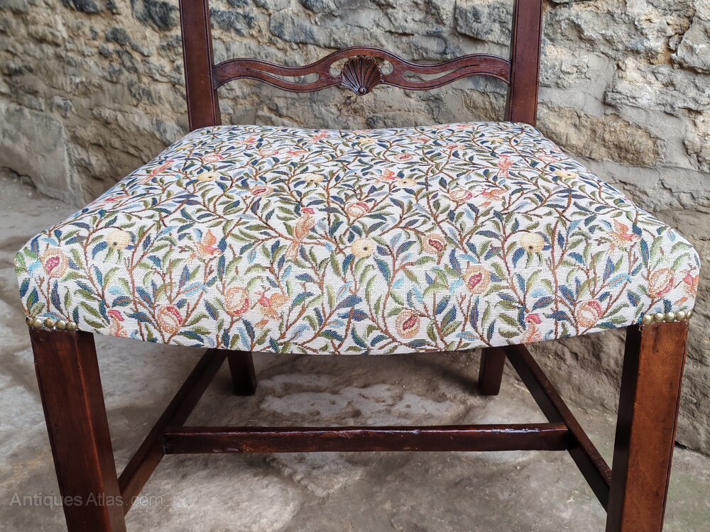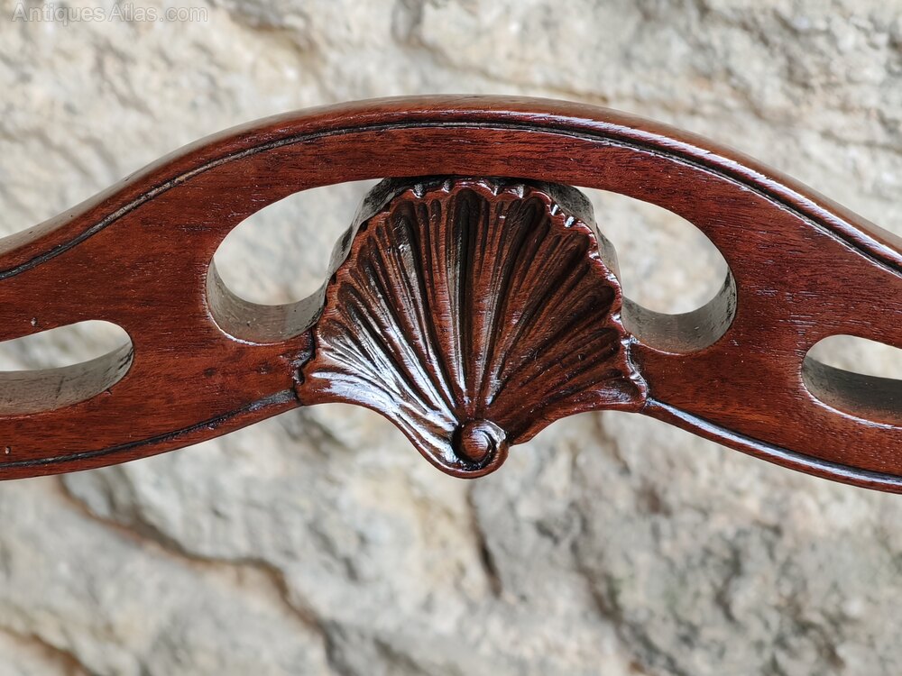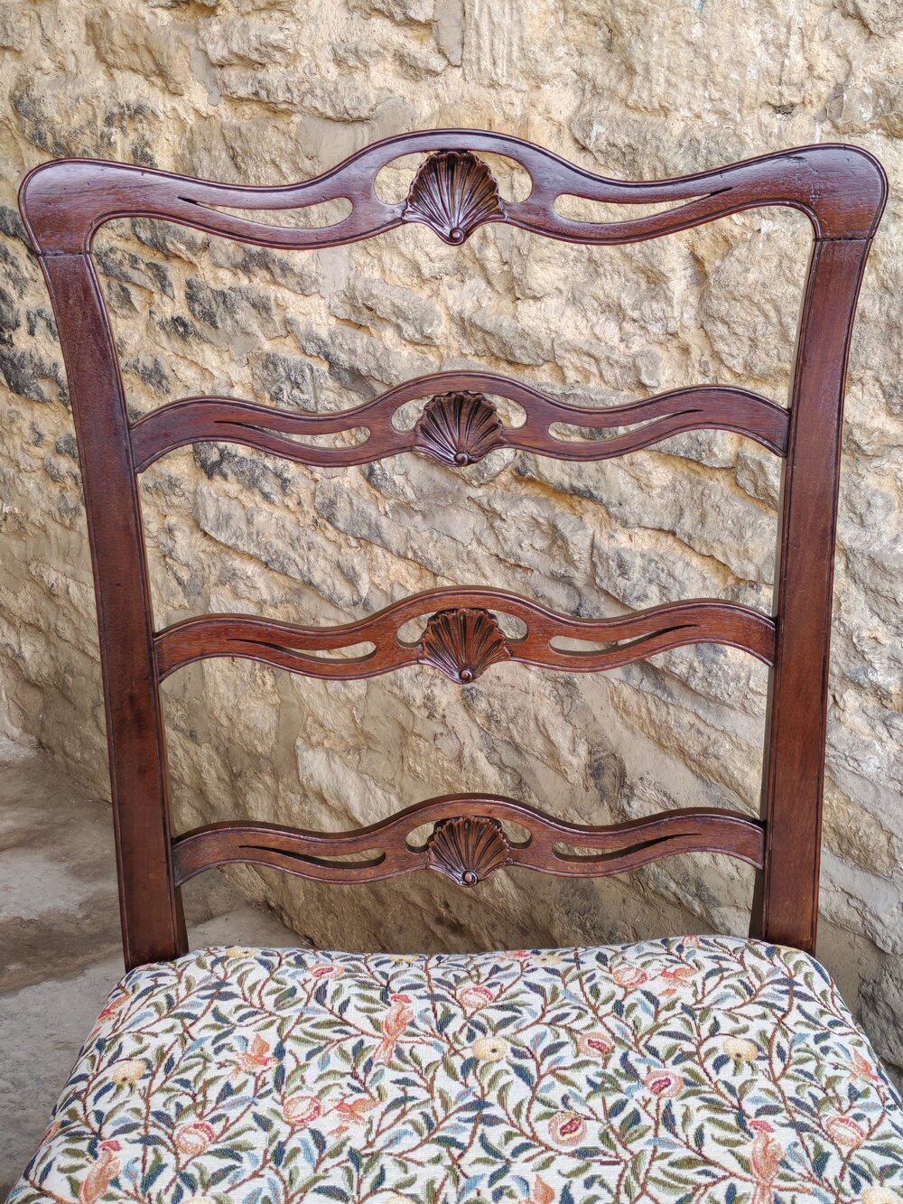 A beautiful mahogany ladderback side chair in the Georgian style circa 1870. With unusual carved shells to the back.A good solid chair with the legs joined by an H stretcher. A nice wide seat which is in excellent condition having been re-covered.