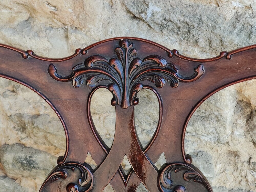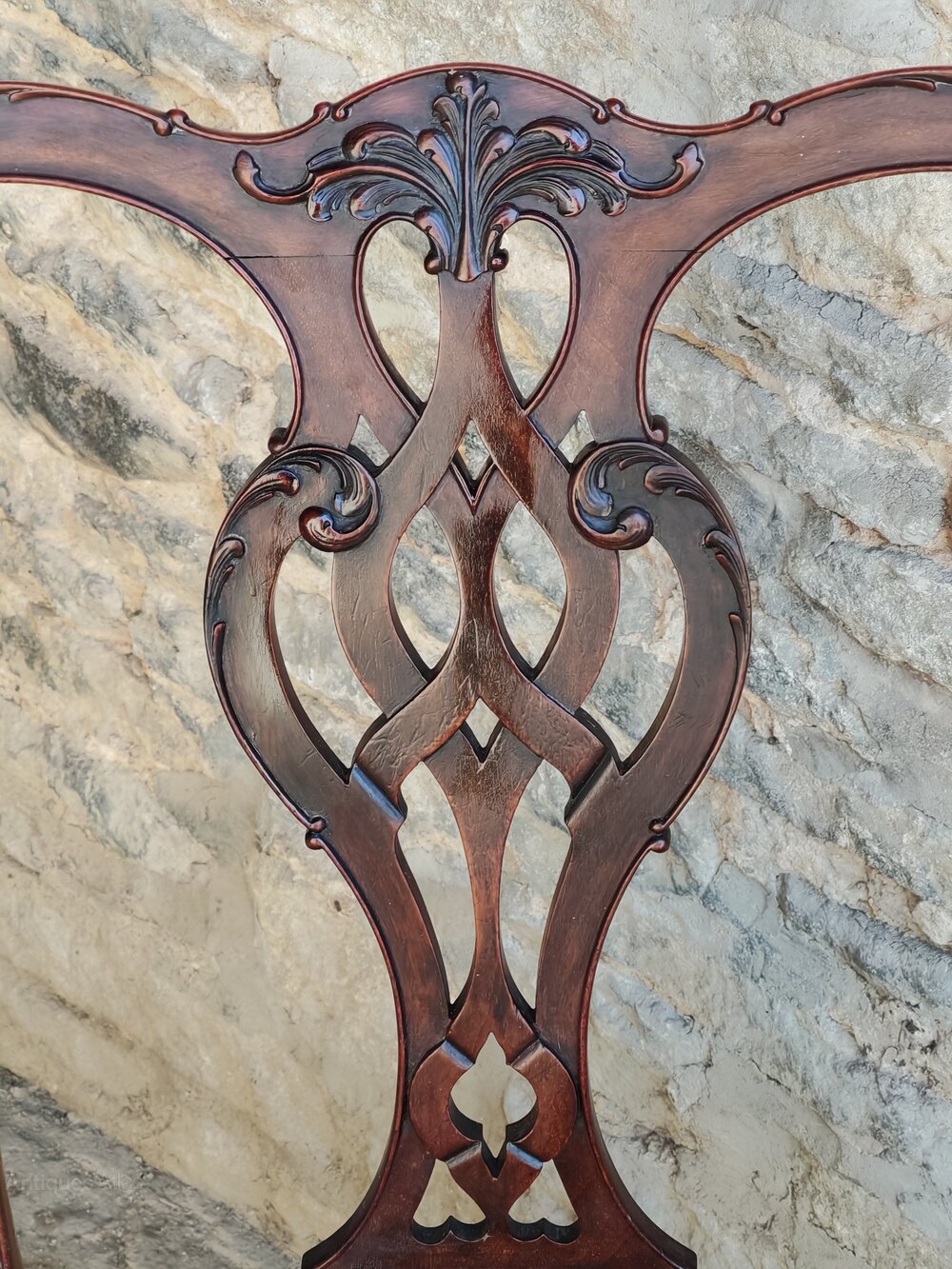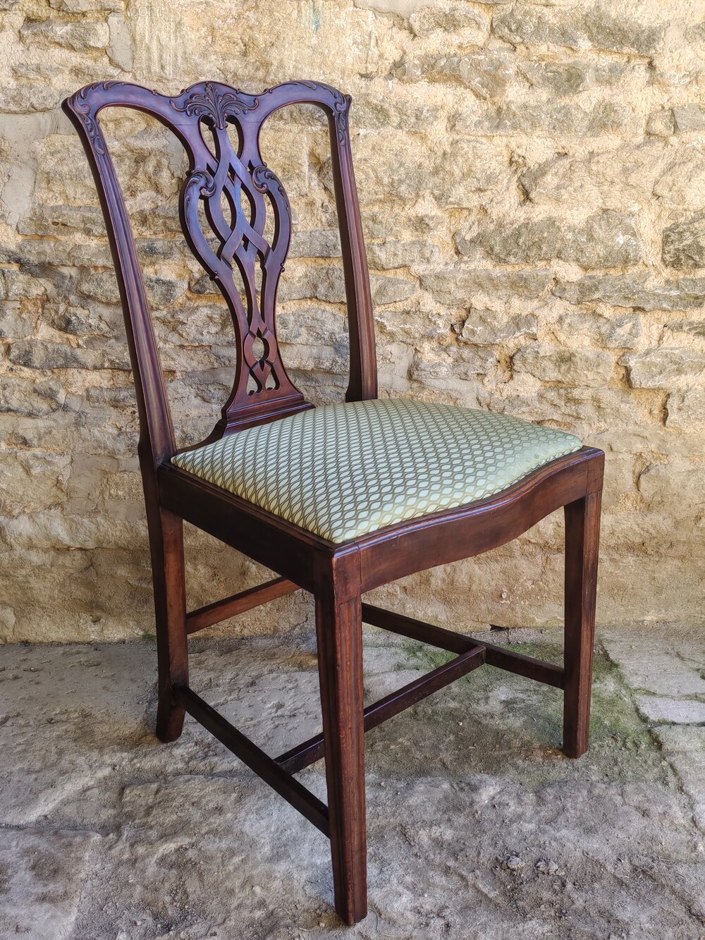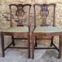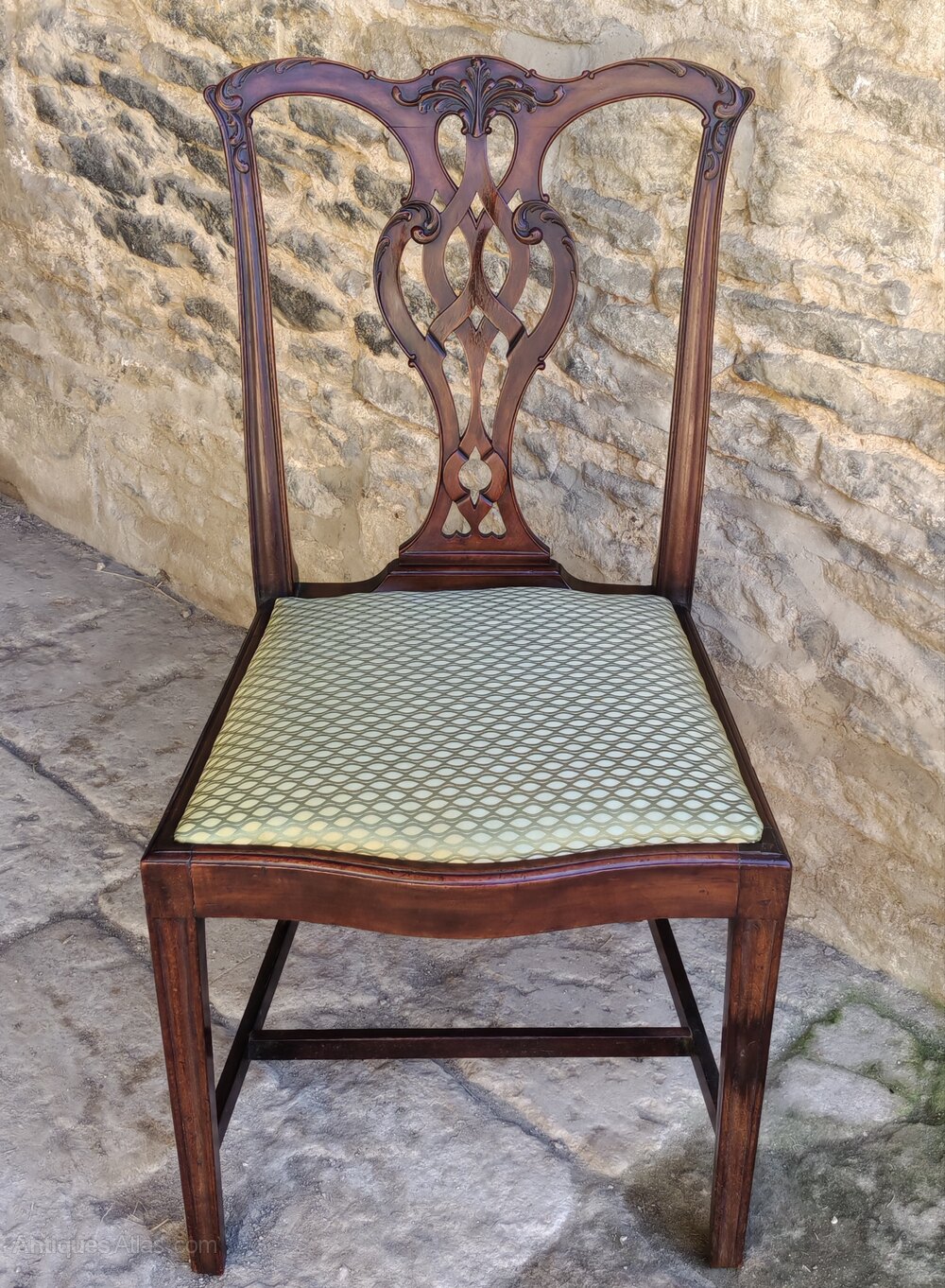 Pair of good quality late Victorian mahogany dining chairs with nicely carved backs and serpentine front rails. The drop in seats are in excellent condition having been re-covered.Good sturdy chairs that would grace any room of the house.