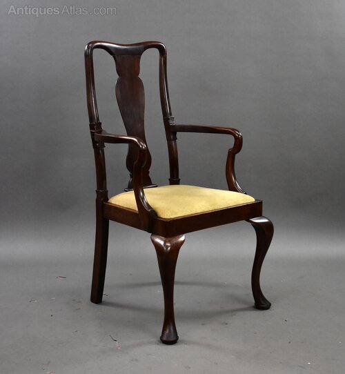 Antique Mahogany Queen Anne Style Open ArmchairItem Code: 1322 A
