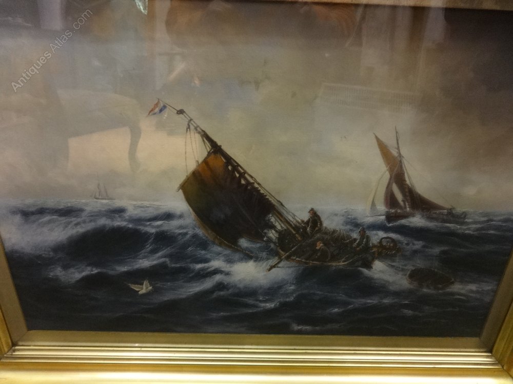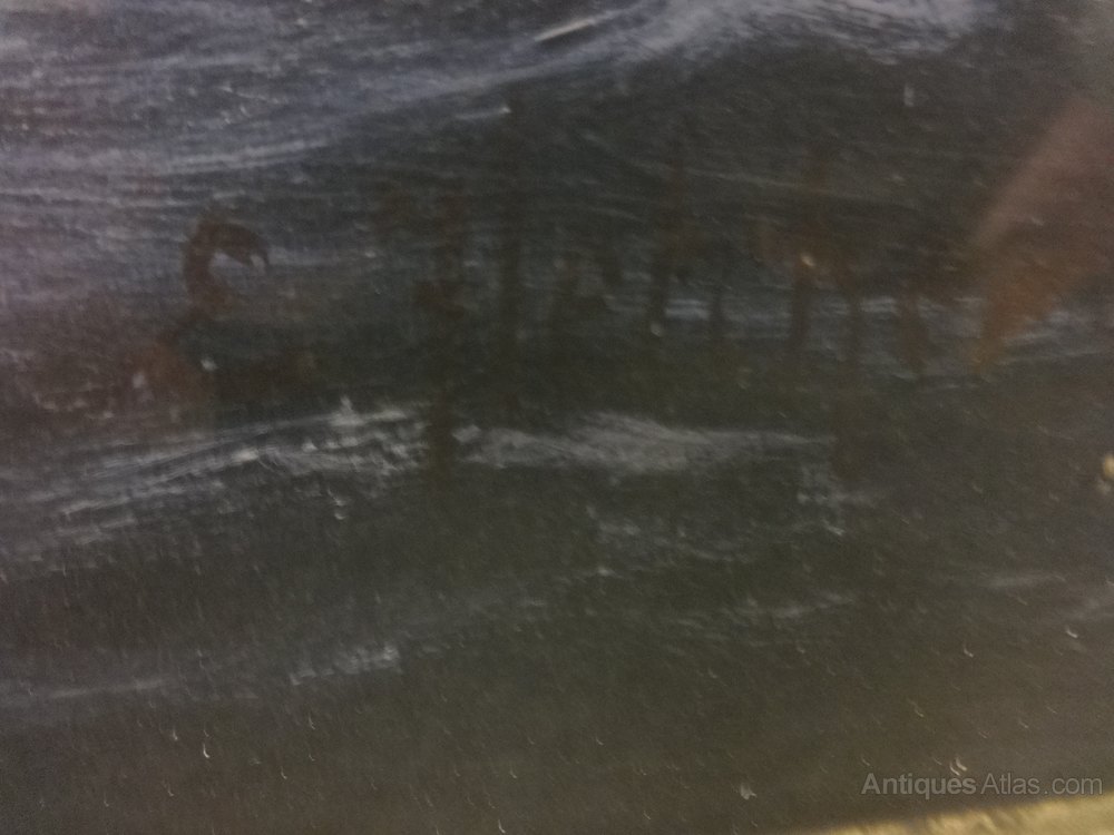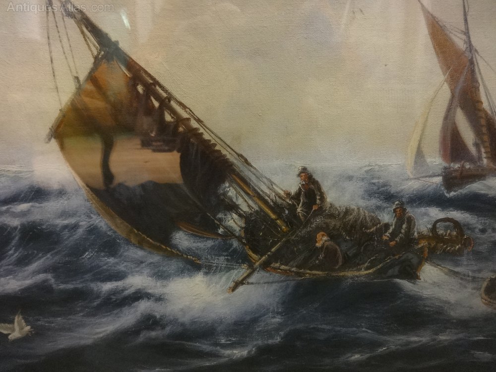 Very Dramatic large oil on canvas behind glass, in very good original condition by 'Edward Heng Eugene FLETCHER'1857 -1945