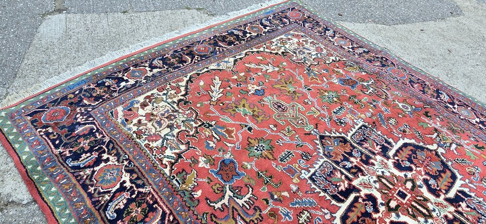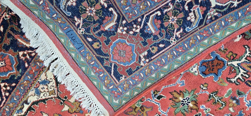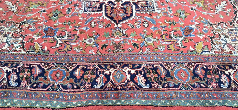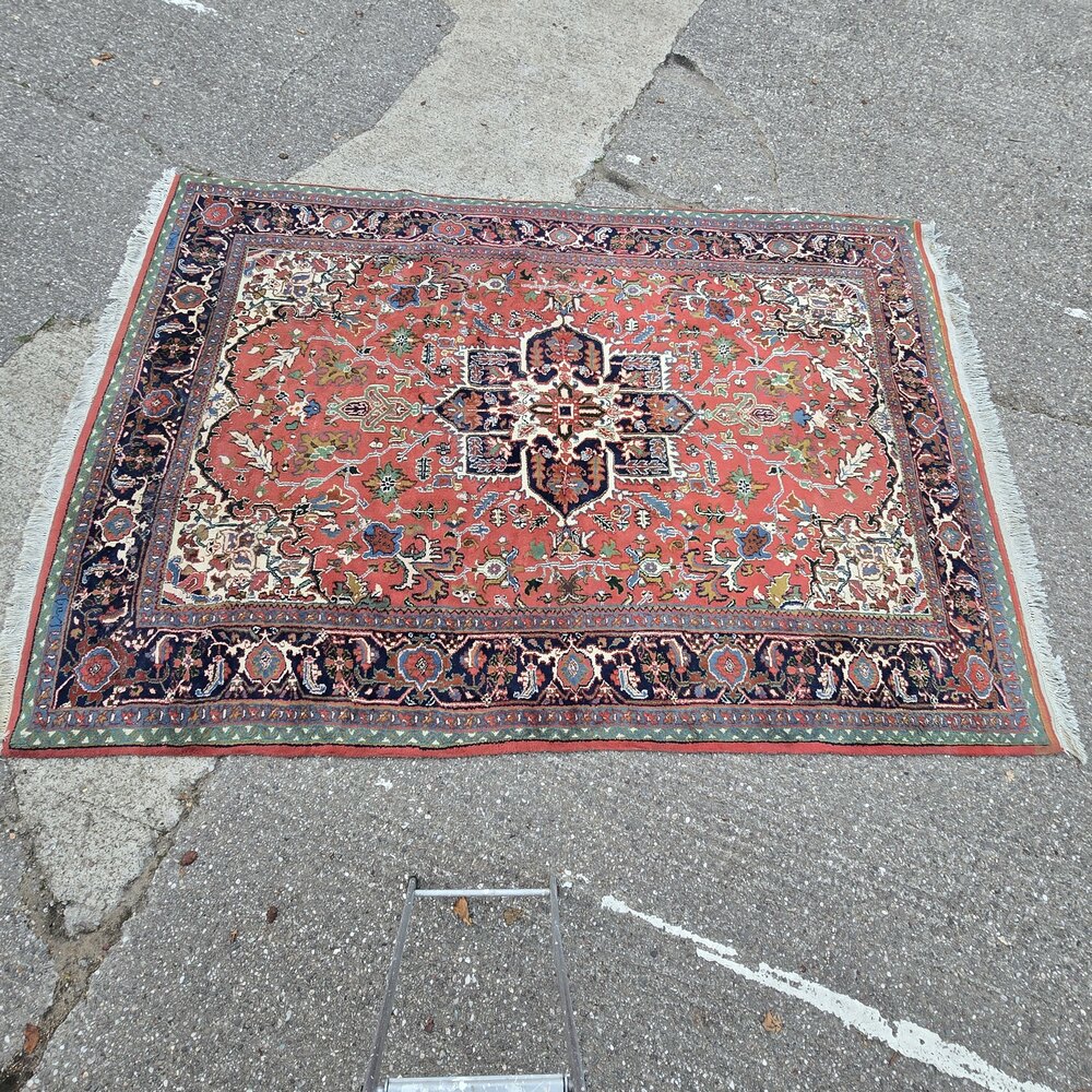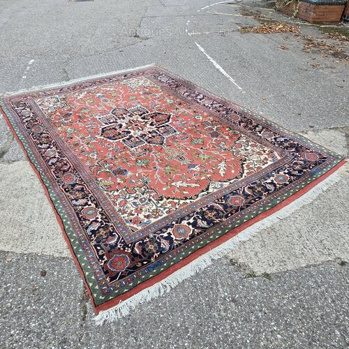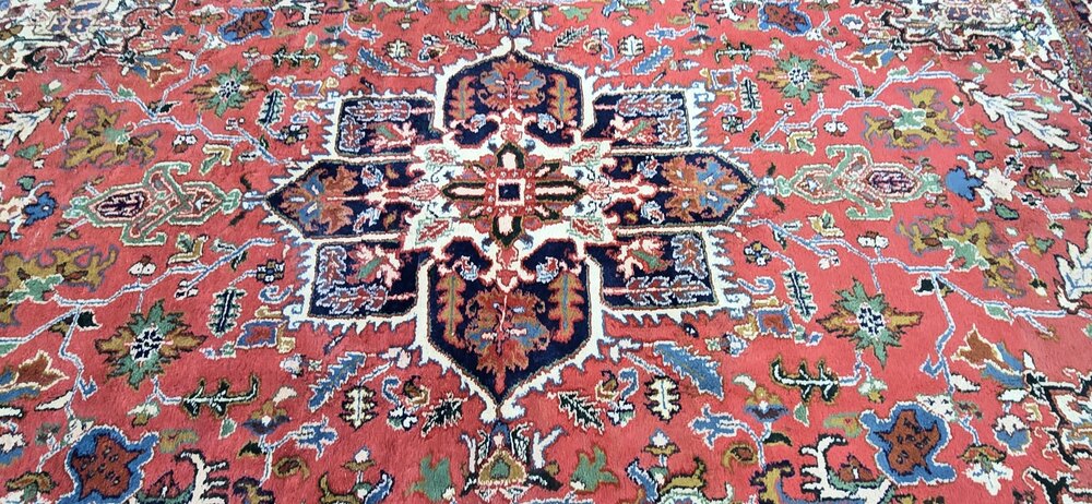 A very nice Oriental carpet of heriz design, super colours with no fading or ware to the central square, slight ware to fringing.353cm x 256cm