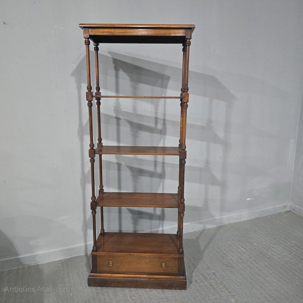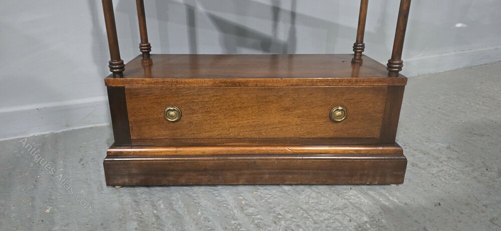 Very nice tall four tier mahogany stand with a full width drawer to the bottom, in very nice overall condition.70" high