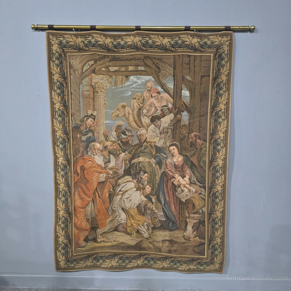 A super quality Antique French tapestry, fully lined on original brass pole and signed P P Rubens Pinxit, in excellent overall condition.Pole length 56"