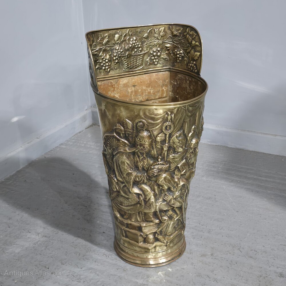 A super quality Victorian brass repousse stick stand, in excellent condition throughout.28.5" high