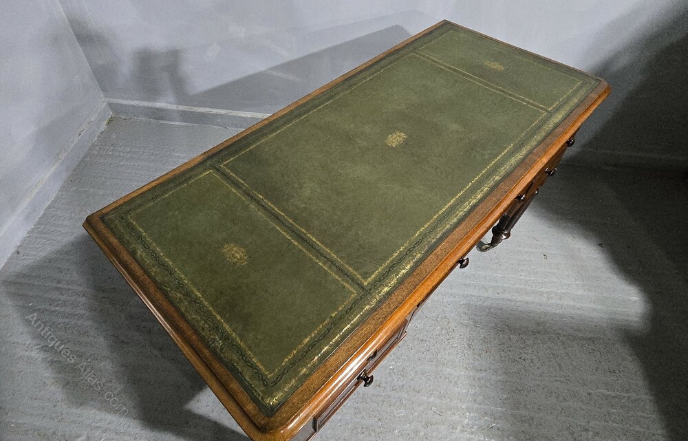 Excellent quality Gillows style mahogany desk with five drawers, green leather and fluted legs with brass cup castors, in excellent overall condition.30" high