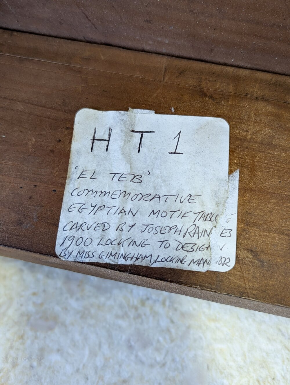While this note cannot be independently verified and is not relied upon for formal attribution, it sits comfortably with the table’s hand-carved character, quality and dating to circa 1900, and adds an intriguing layer of contextual interest to an already distinctive piece.