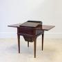 Very good antique condition, with a gentle patina and some wear to the leather writing surface consistent with age and use. Below, an additional pull-out storage compartment with a leather-covered lid, with age-related wear to the interior, retained in original condition. Structurally sound, clean and ready to place.