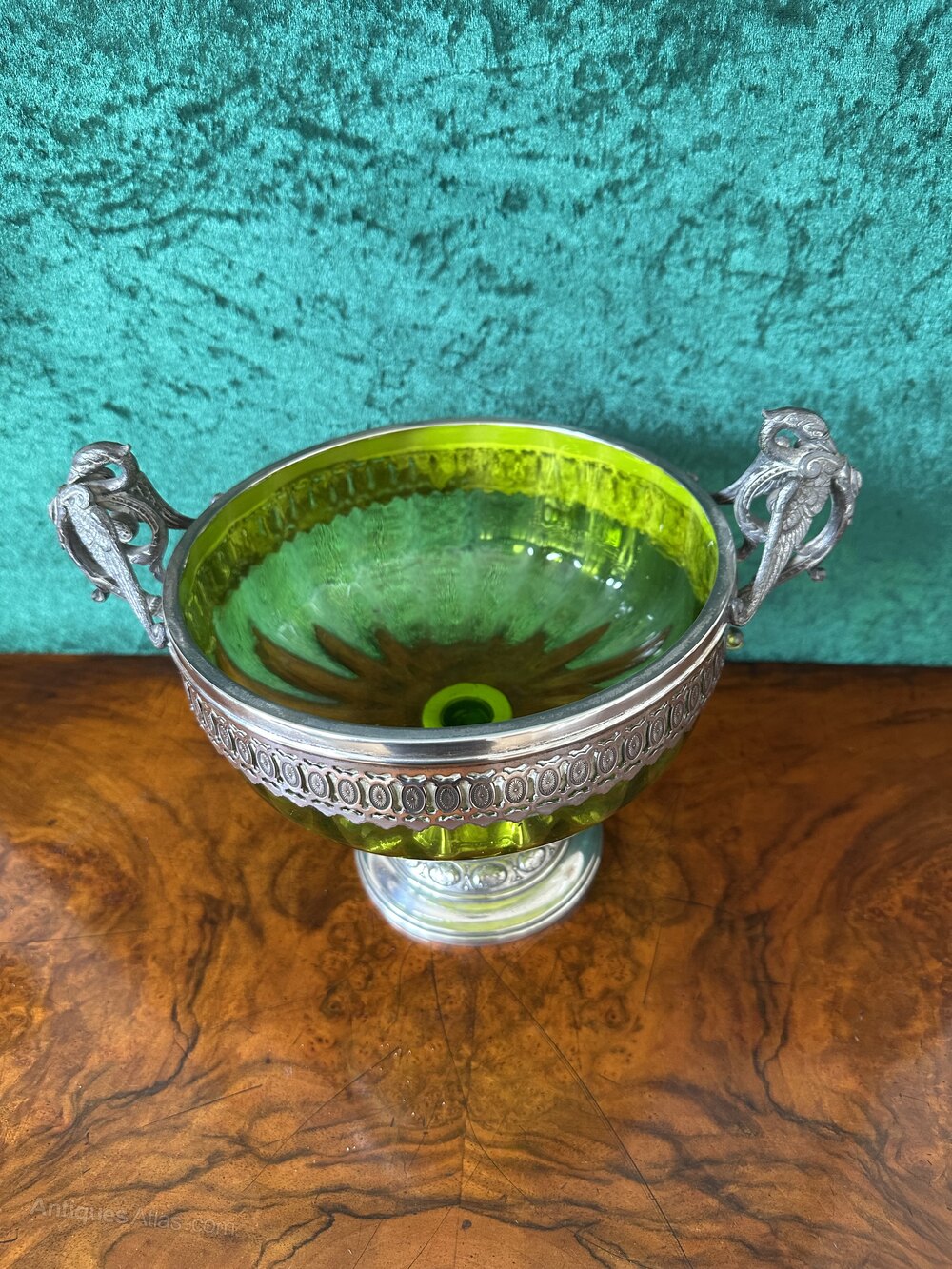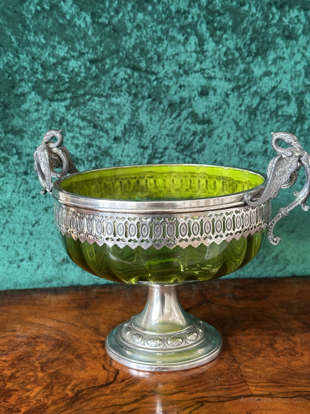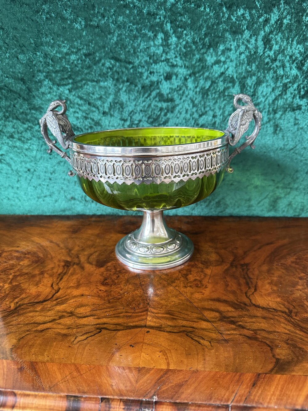 A most decorative green glass taza, the rim flanked by Griffin handles with spread wings over a heavy gauge green glass bowl raised on a pedestal. A rare opportunity to acquire a bowl of this quality, which comes in totally original condition with no chips or cracks.Frank Craig Antiques established 1972, with 50 years in the antique trade. Our experience ensures that we only select the best pieces in their category. We offer our customers a reliable service, with the assurance that all our stock is thoroughly vetted as genuine antique and sold at the best possible price point. All items are sold without restoration or a minimum if required and will be in a condition commensurate with age. We can arrange deliveries to any destination. If a purchase is returned for any reason, any incurred shipping charges will be the liability of the buyer. for further items of interest please visit our website