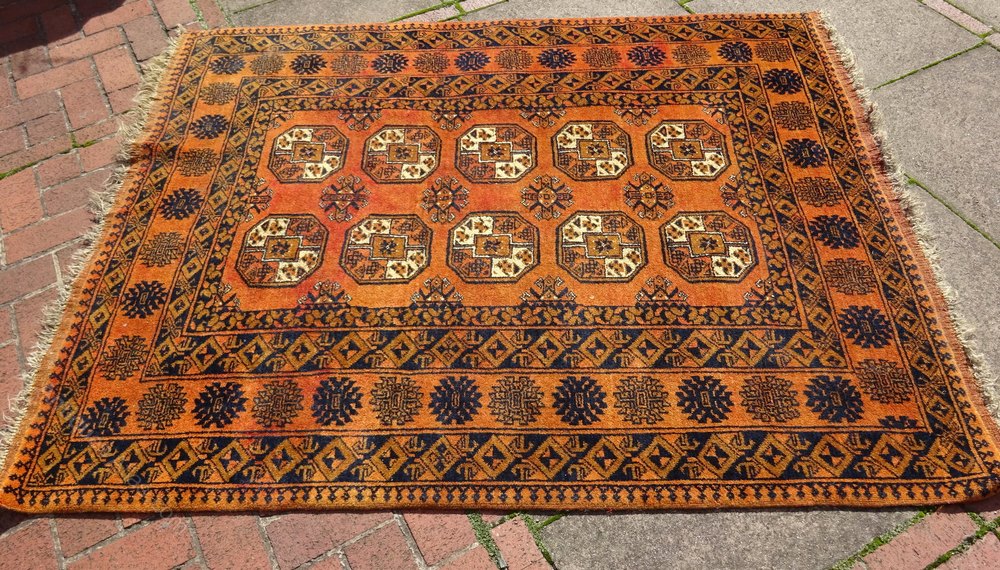 Vintage Tekke Bokhara Wool Area Rug Burnt Orange BeautifulCondition: