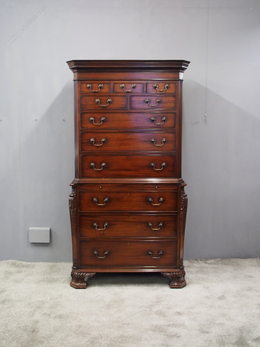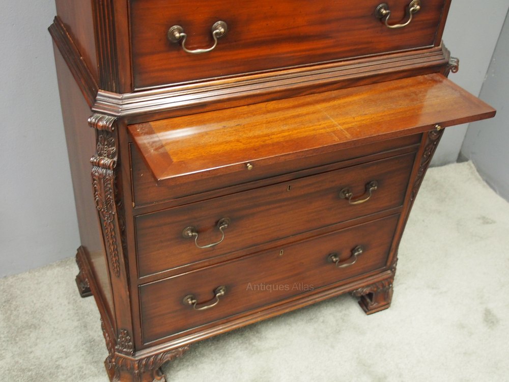 George III Style Carved Mahogany Chest on Chest