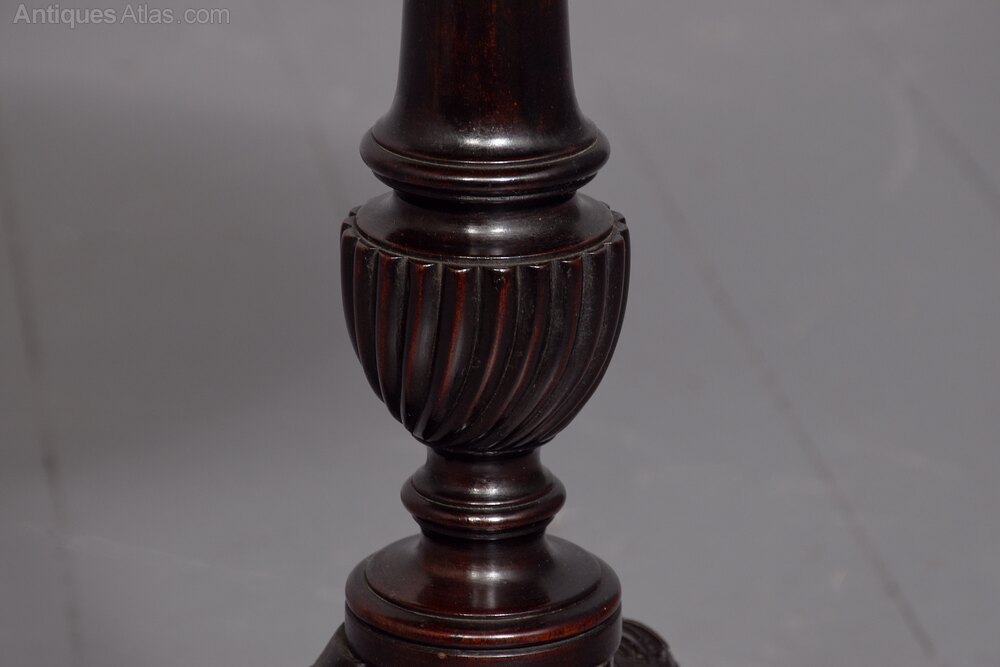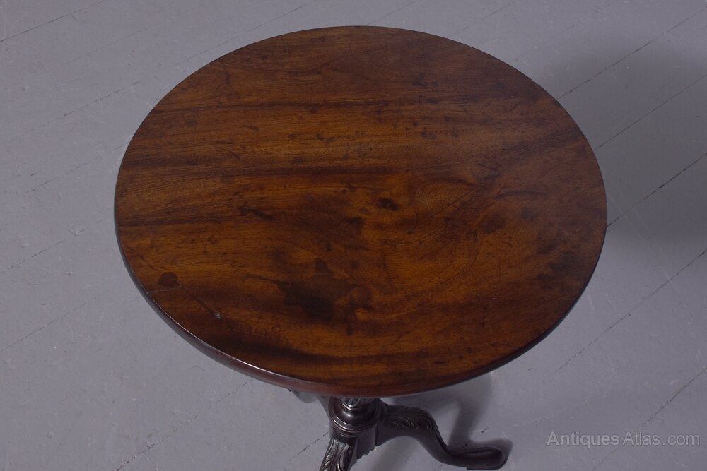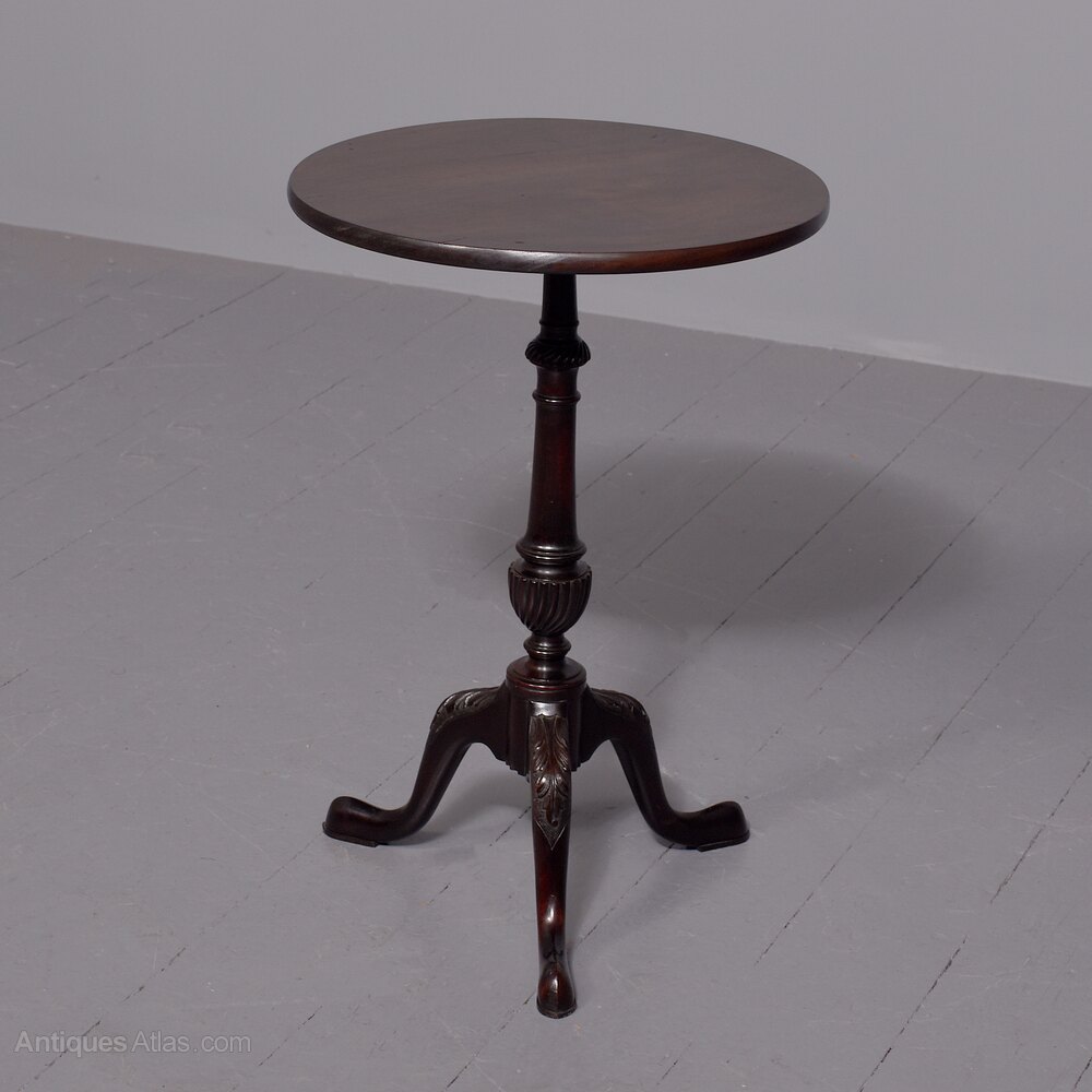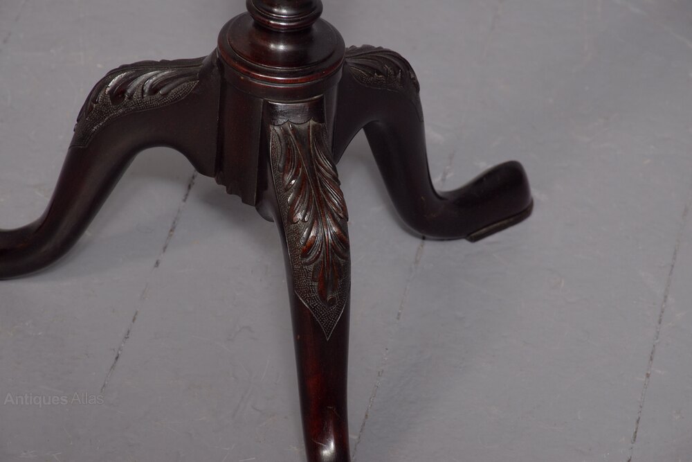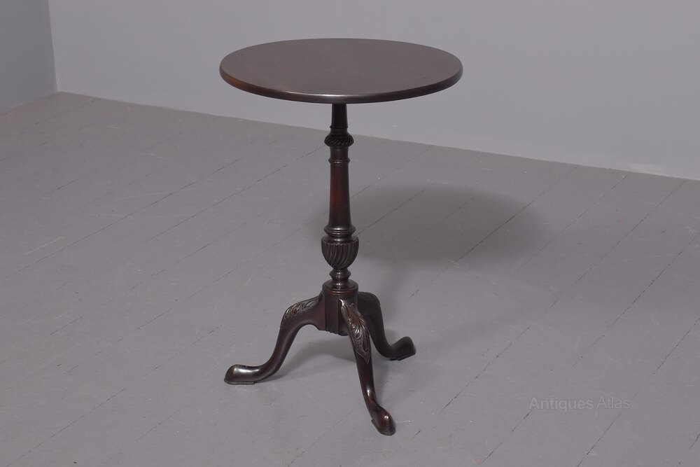 Circa 1880. 19th-century Chippendale-style circular mahogany occasional or wine table. The circular top in fine Spanish mahogany with nice figuring and character. The tapering stem with fluted decoration over a tripod base with acanthus-carved knees and neat pad feet.45 cm diameter, 65 cm tall.