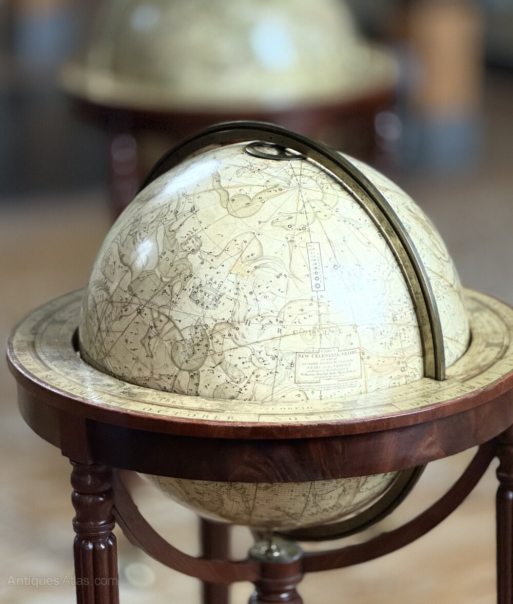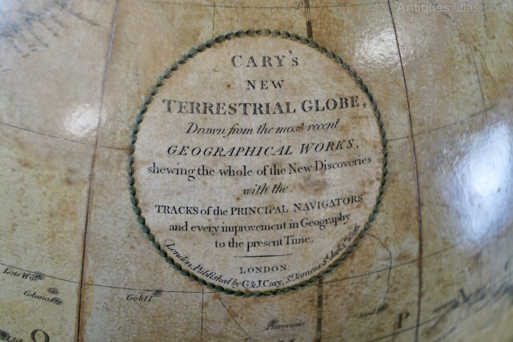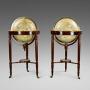 A pair of 15" library globes By G & J Cary, dated 1826.Standing in their original mahogany bases with turned and reeded legs, the globes are in very good and sympathetically restored condition. 980mm high and 510mm diameter.