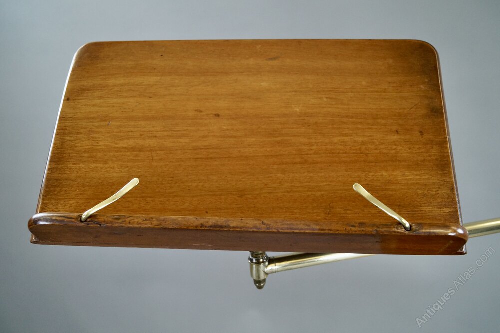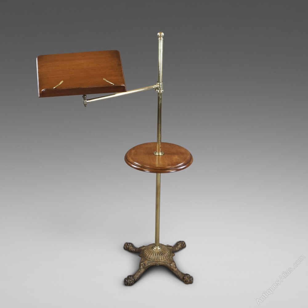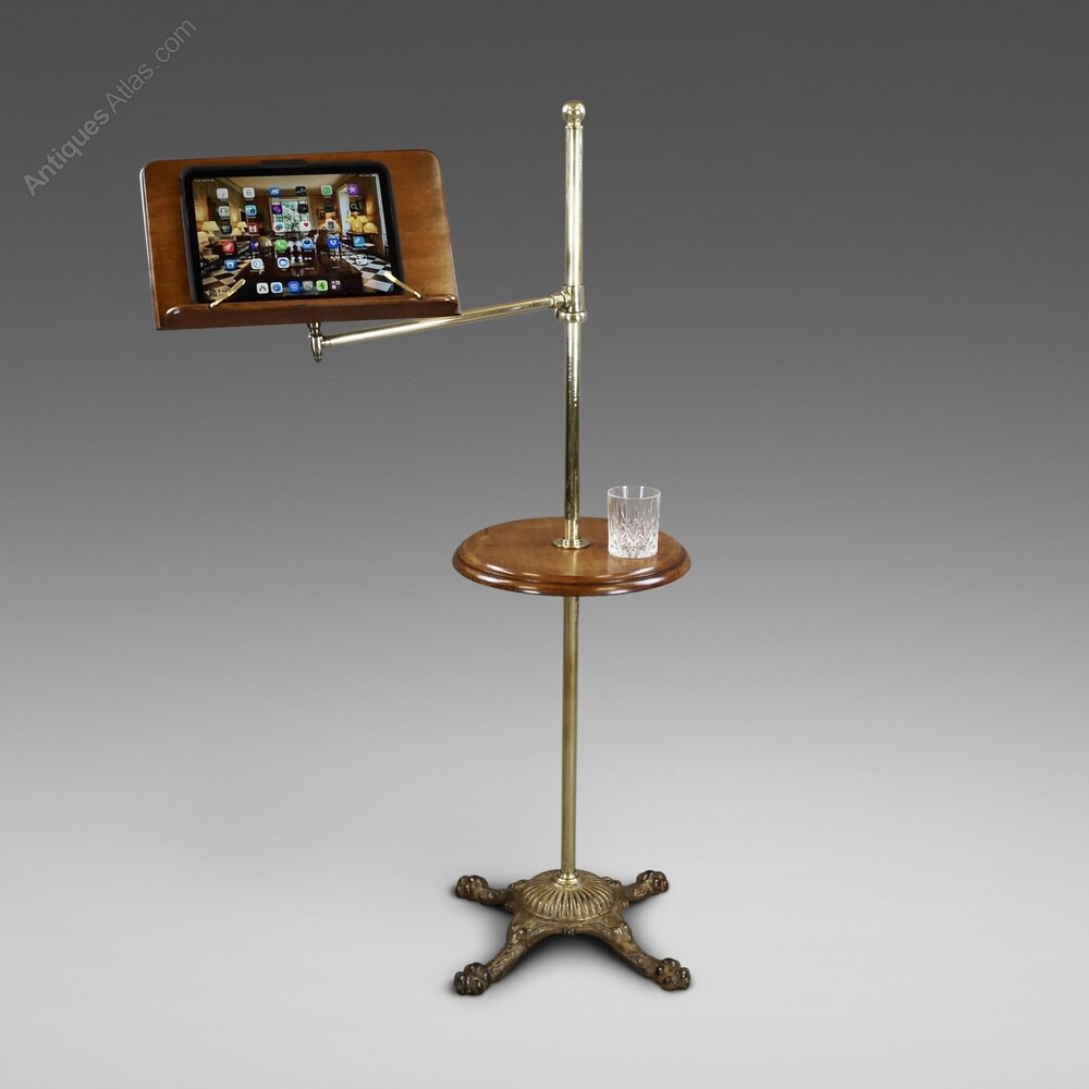 A Late 19th Century reading table. Raised on a cast iron base with paw feet and a brass pole supporting a circular walnut table and an adjustable walnut book rest. In very good and original condition. 1220mm high, 760mm wide and 140mm deep. English. Circa 1880.W J Gravener Antiques is a family owned business, started in 1963 by William who was joined by son, Mark in 1981 and continues today with the same ethos of dealing in fine quality English and Continental furniture, mirrors and decorative objects, from the 18th & 19th centuries. Now under the stewardship of Mark and his wife, Louise, we take pride in maintaining the high standards which William set more than 50 years ago.