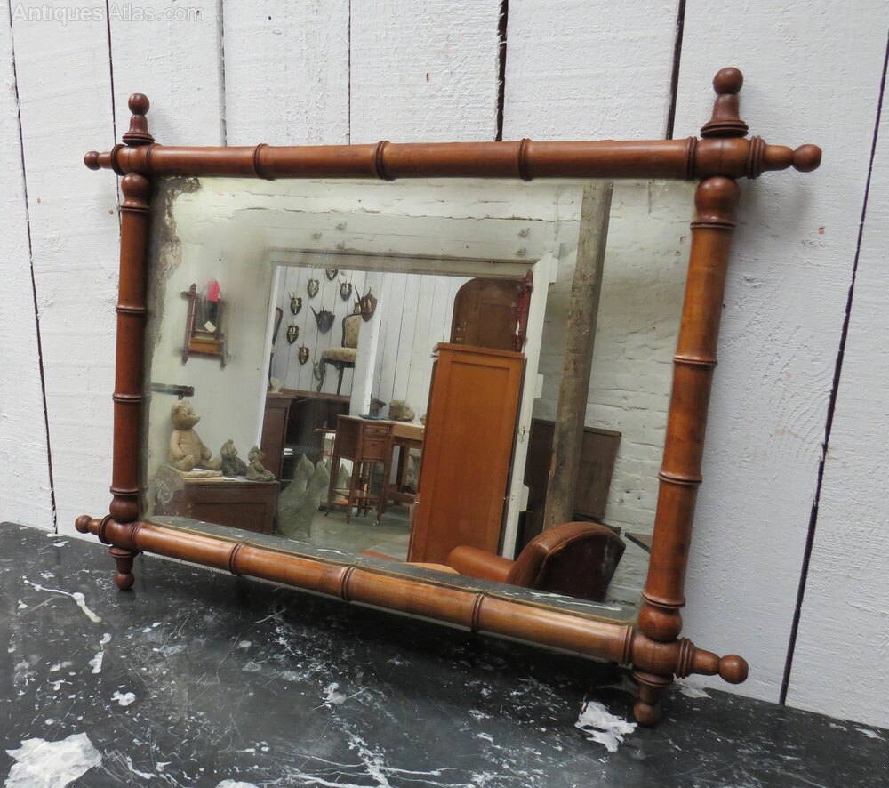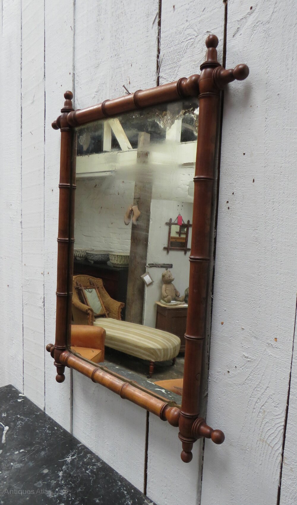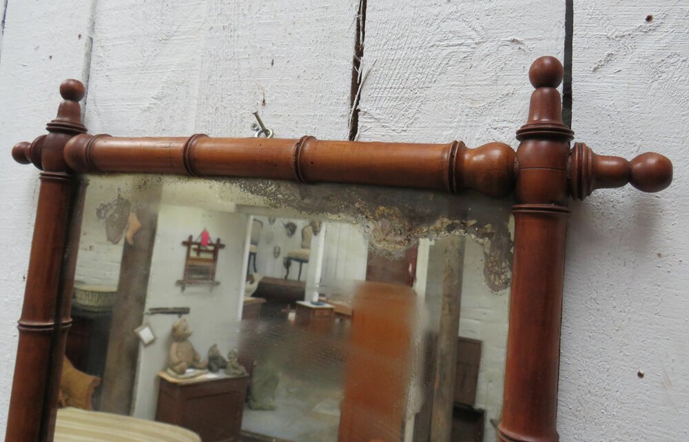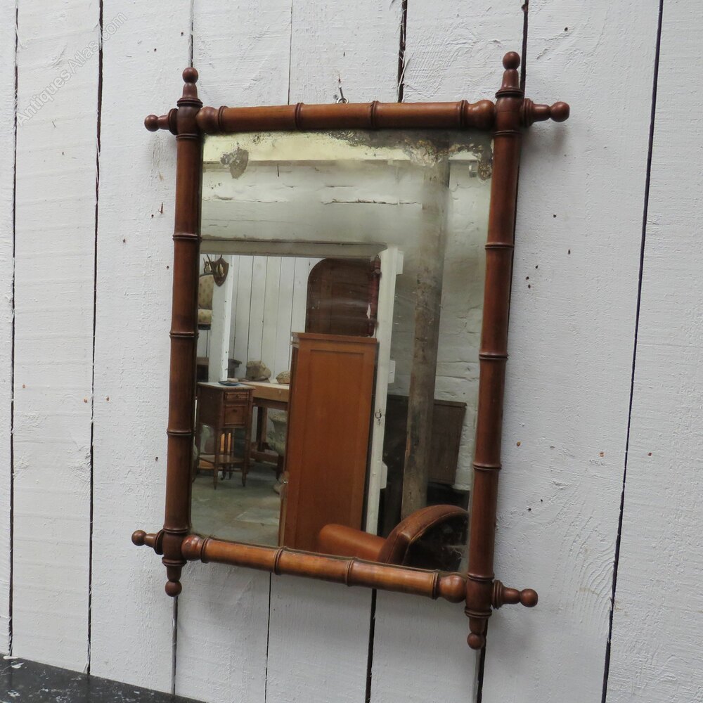 Late 19th century, early 20th century French decorative faux bamboo wall mirror with foxing to the original glass plate, ready to hang. More images available.Shipping information