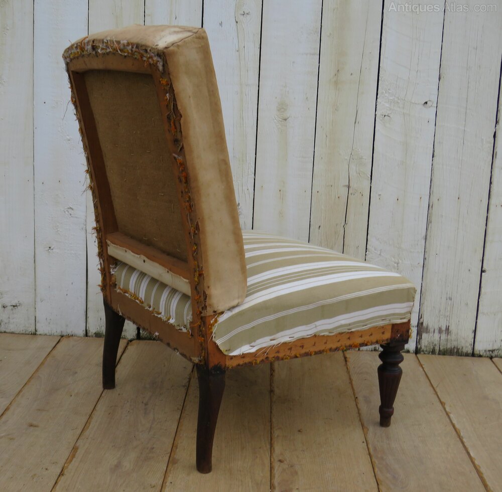 Shapely, sound and sturdy 19th century French Napoleon III chauffeuse, nursing, fireside, slipper chair for re-uphoilstery.Shipping information
