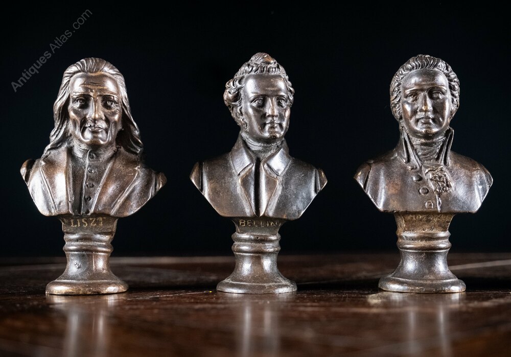 Each bust has the name of its likeness in gilt to the base. Each bust is solid with good weight.The bust of 'Schubert' has felt to the base, seemingly due to a slightly uneven base.