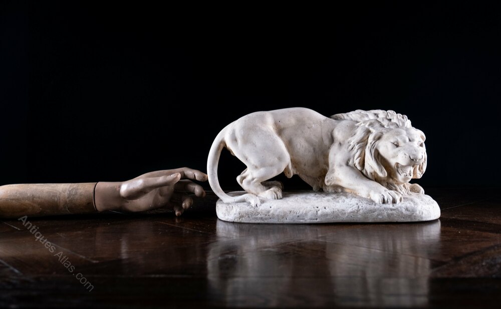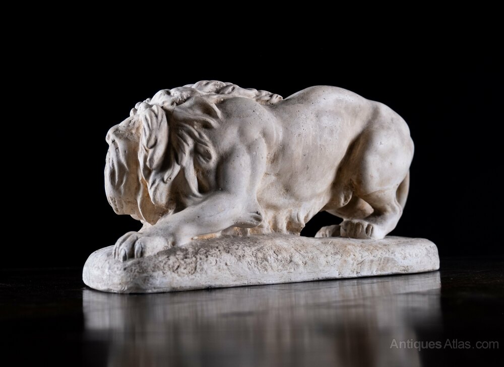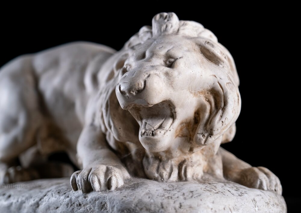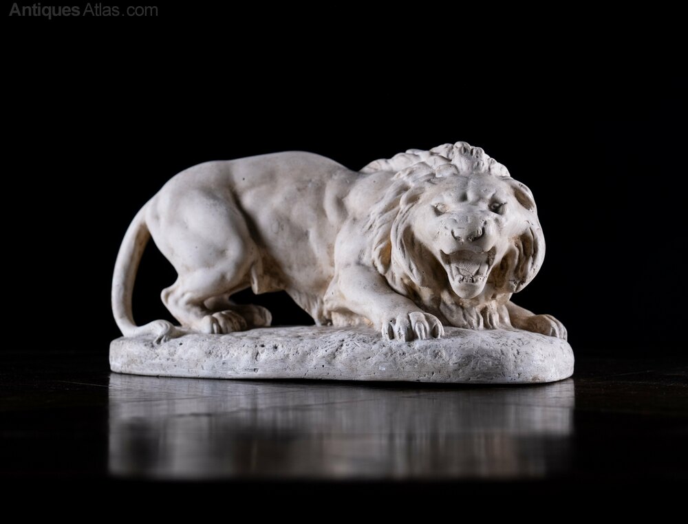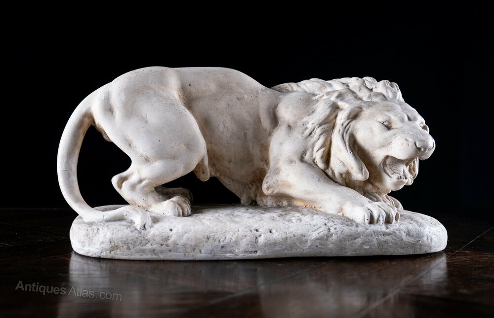 An impressive plaster of large proportions in the manner of Antoine-Louis Barye (1795-1875) depicting a prowling lion, circa. early 20th century.The lion is of arched form with lowered front legs, raised hind and a roaring expression. Lights signs of wear commensurate with age. Great colour throughout.