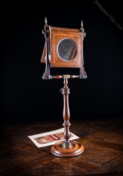The zograscope was considered the height of technology in its time and as such, they are usually finely made with turned wood and inlays, ready to show off to guests during parlour entertainments.
