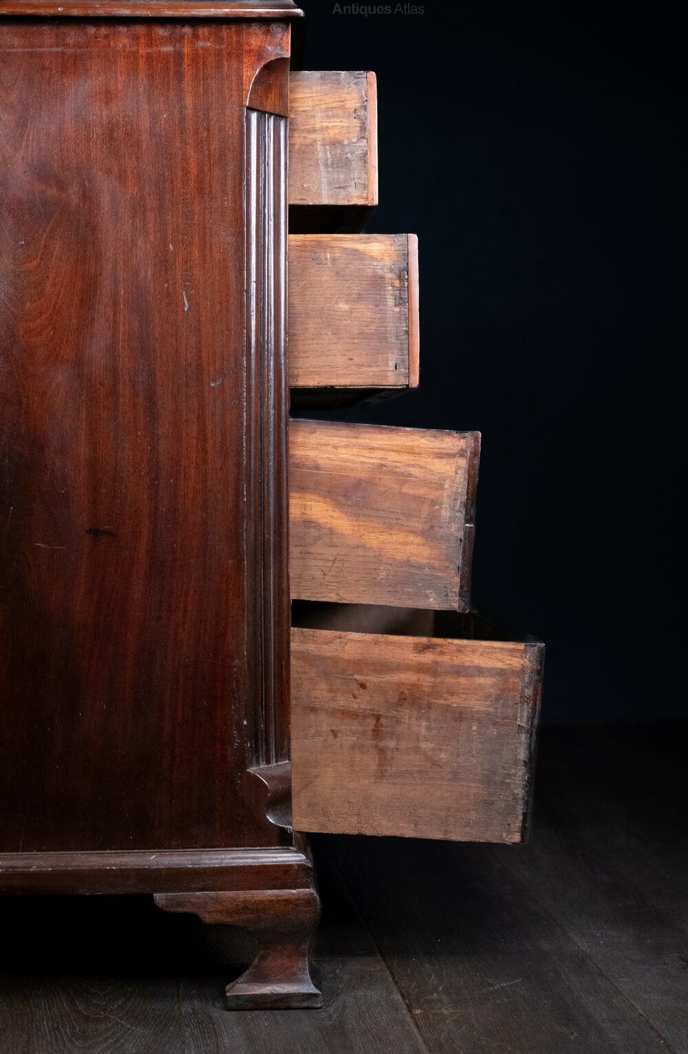 The brasses are historic but appropriate replacements. All drawers open and close with ease. There are some small areas of wear commensurate with age but generally the piece displays extremely well and looks outstanding in situ.