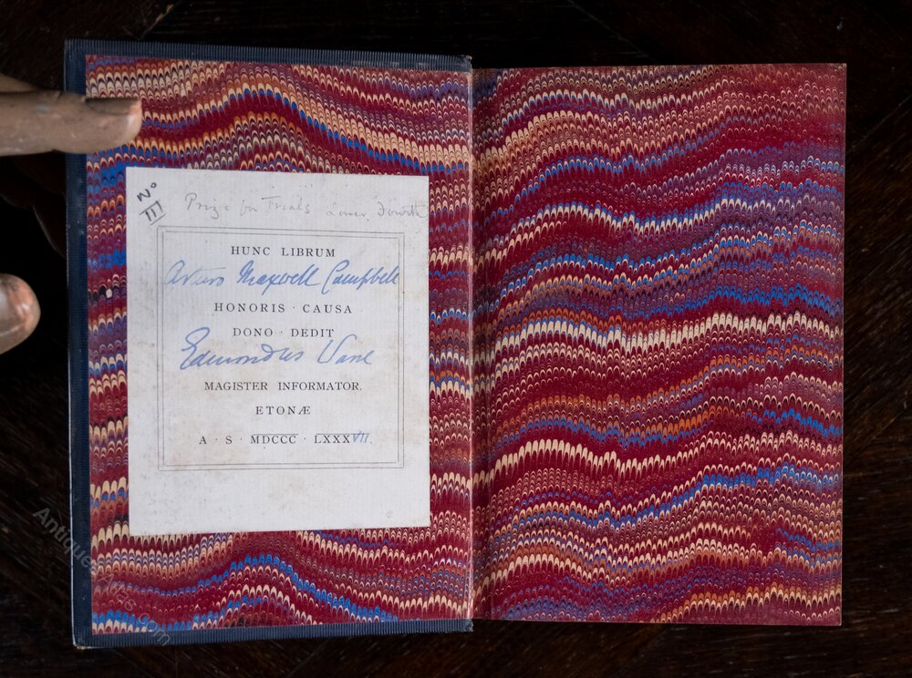 Marbles page edges. Marbled endpapers. Eton School prize plate to front pastedown. Pages are clean throughout.