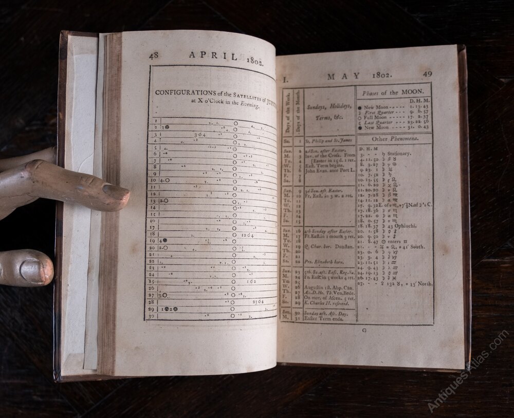 This work was designed for use by sailors and astronomers and contained data on celestial bodies to determine longitude at sea. The work of this year was part of a larger series spanning from 1767-1831 and was overseen by the British Astronomer Royal, Nevil Maskelyne (1795-1811).