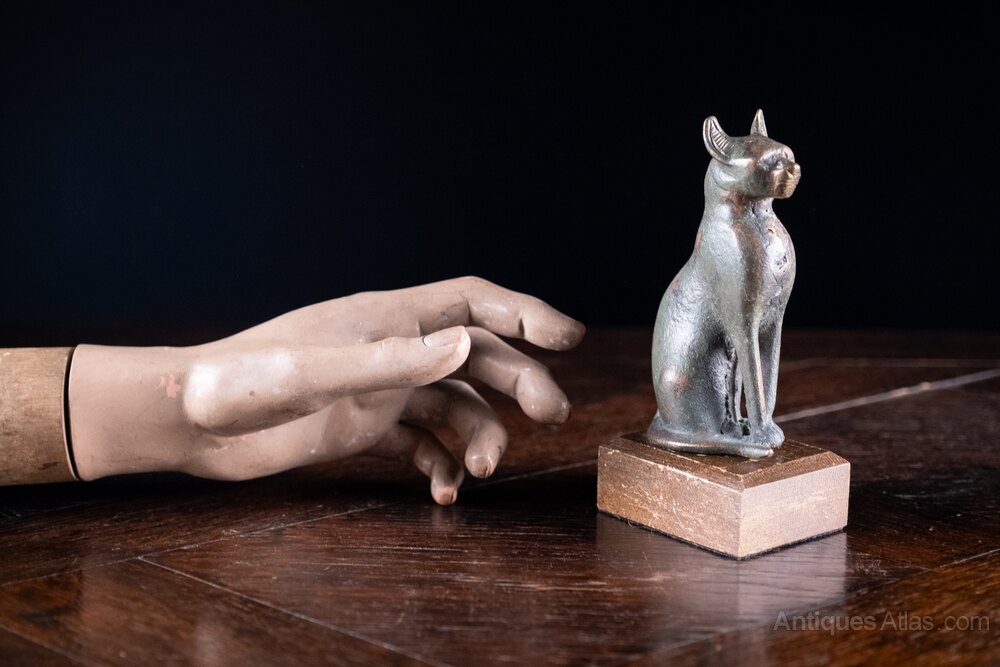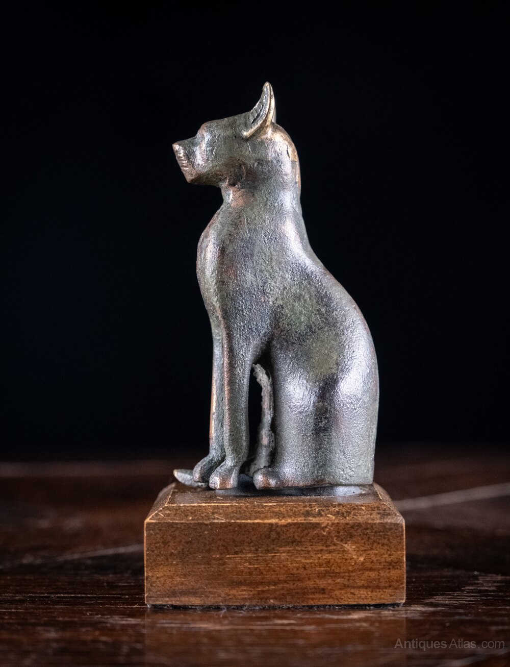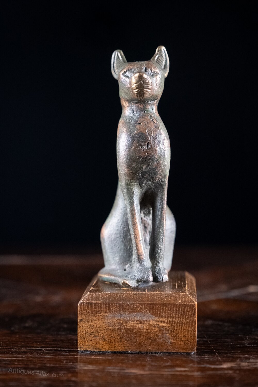 An interesting early 20th century bronze after the Gayer-Anderson Cat (664–332 BC).The Gayer-Anderson cat is a bronze figure depicting one form of the goddess Bastet. The goddess was usually shown as a cat-headed woman, or in the form of a cat. Her principal cult centre was Bubastis in the Nile Delta. Bastet was a mother goddess and benign counterpart to the more aggressive lion goddess Sekhmet.