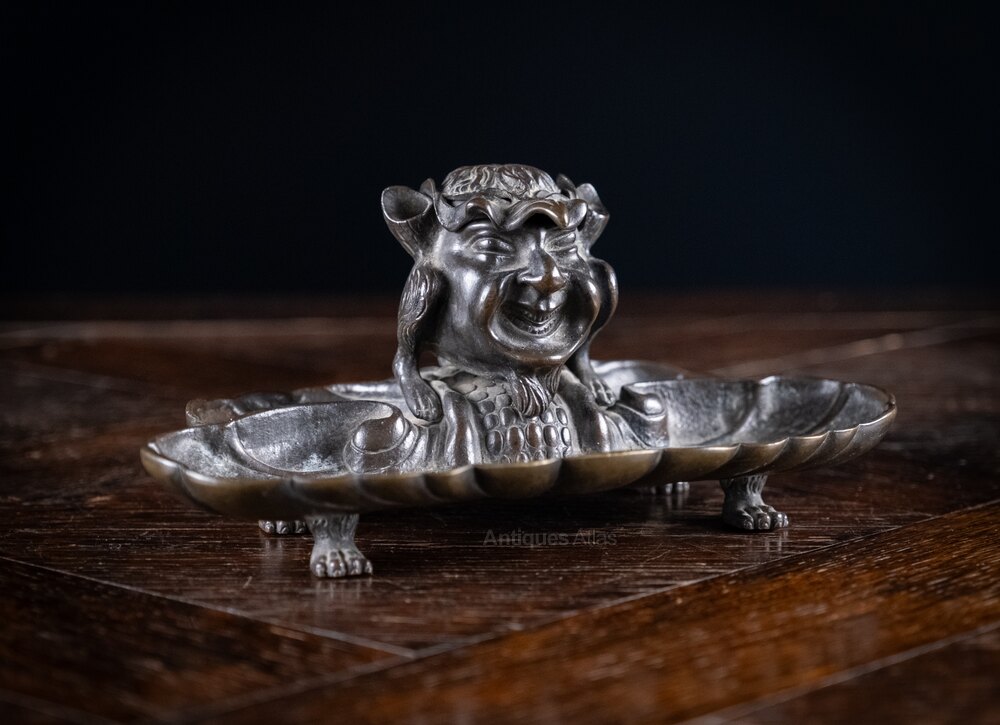 19th Century Bronze Hidden Devil / Bird Inkwell