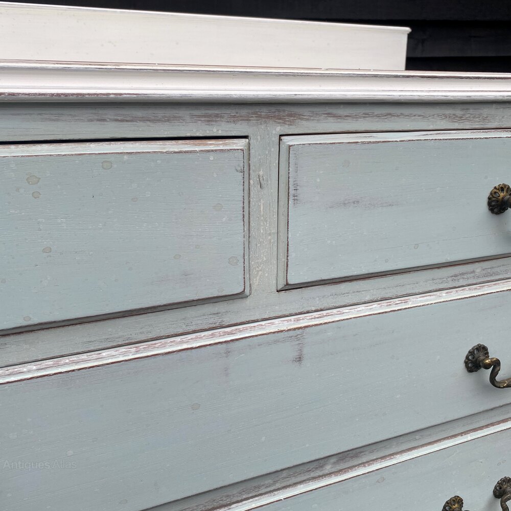 Duck Egg Blue/white Painted Chest Of Drawers