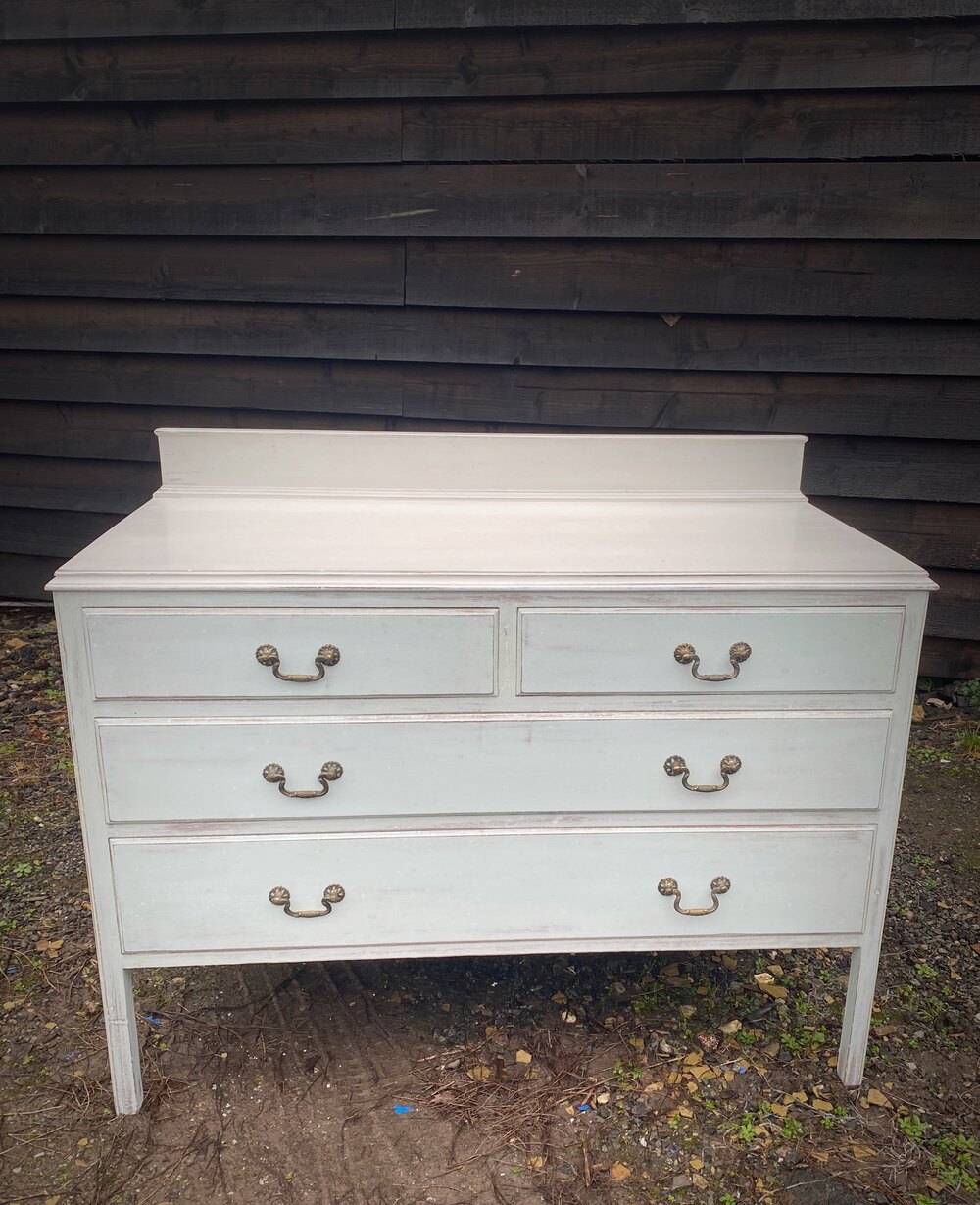 Two over 2 arrangement of drawers all with brass swan neck pull handles.