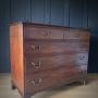 2 over 3 arrangement of graduating drawers with brass swan neck handles. The whole supported on bracket feet. All drawers run smoothly