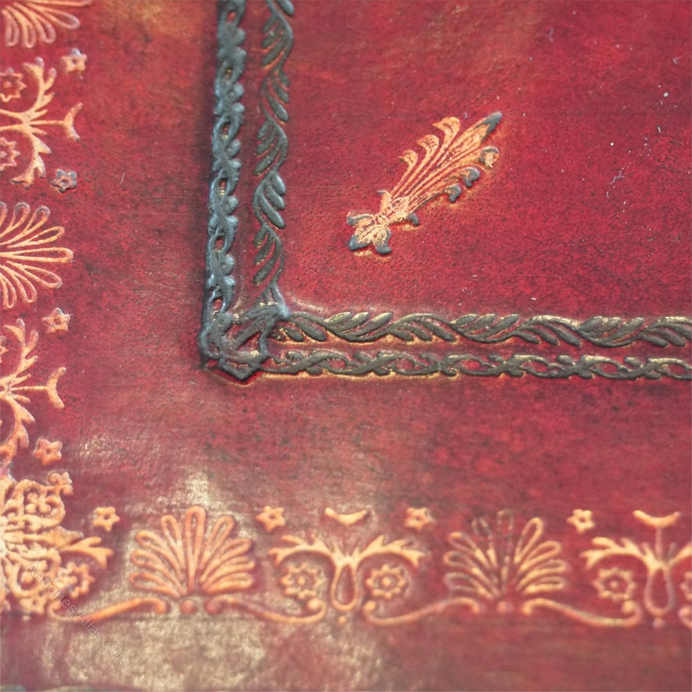 The inset hide leather writing surface is hand dyed and again hand gilt tooled. It is not a leather that can be bought cheaply off a roll, but all carefully and skilfully made to look as if it has been on the desk since it was first made.