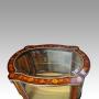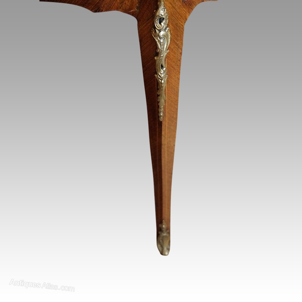Made in Kingwood with a full band of marquetry inlay around the top in the frame around the plate bevelled glass top.