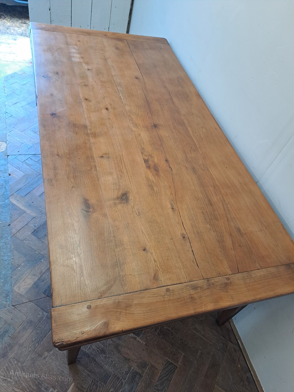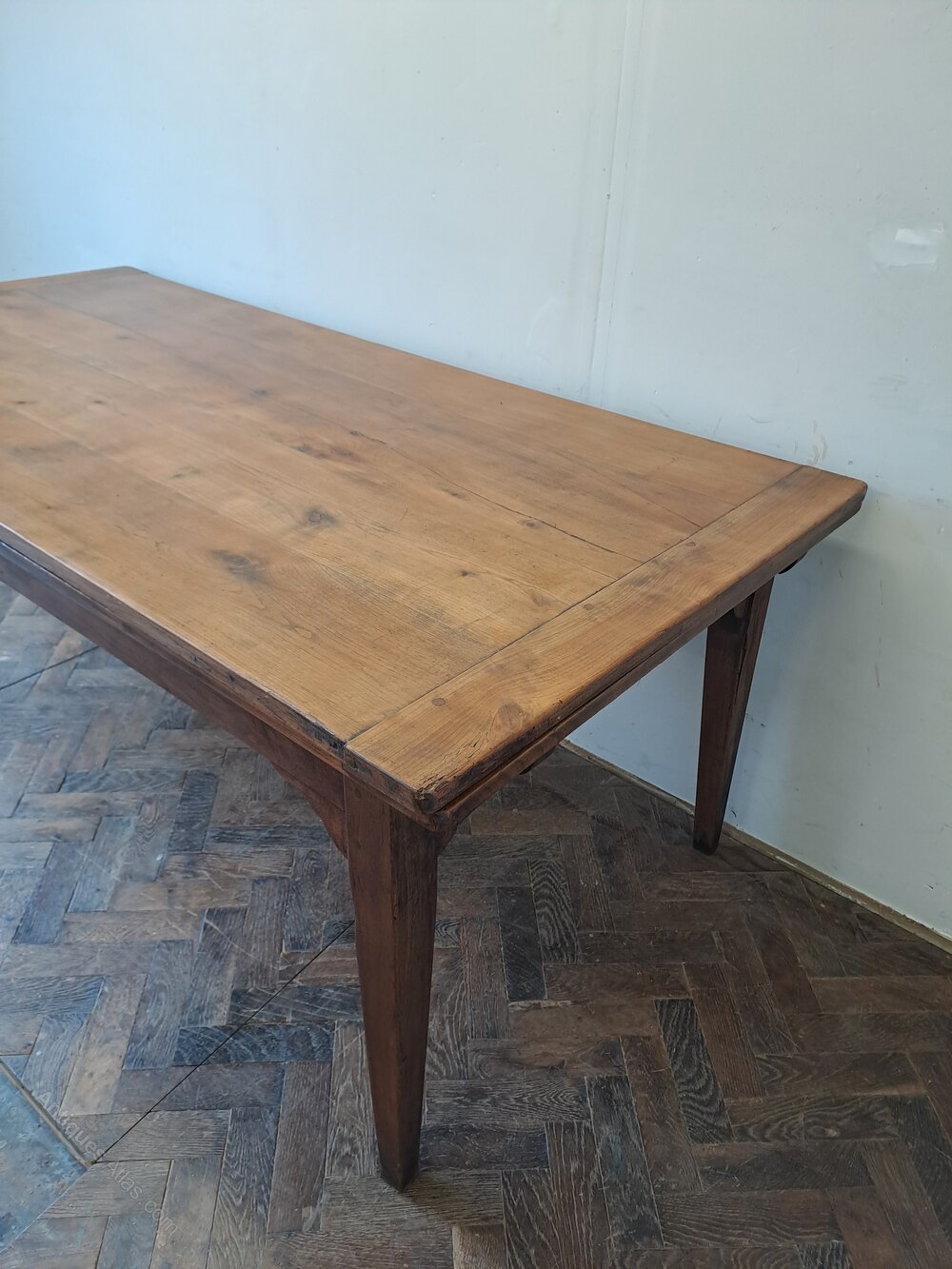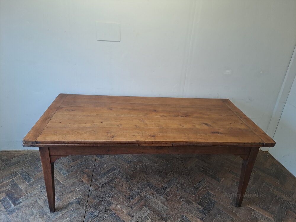 Hutton-Clarke Antiques is pleased to offer a wonderful French 19th-century cherrywood farmhouse table. Notable for its extending capability, the table can be adjusted from 1.8 9 metres to 3.5 metres. It stands on tapered legs and has a depth of 91 centimetres. The table boasts a light colour and patina. Making it an excellent addition to a period or modern property. leg height 60 cmheight 75 cm, depth 91 cm, length 189 cm extends to 351 cm