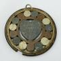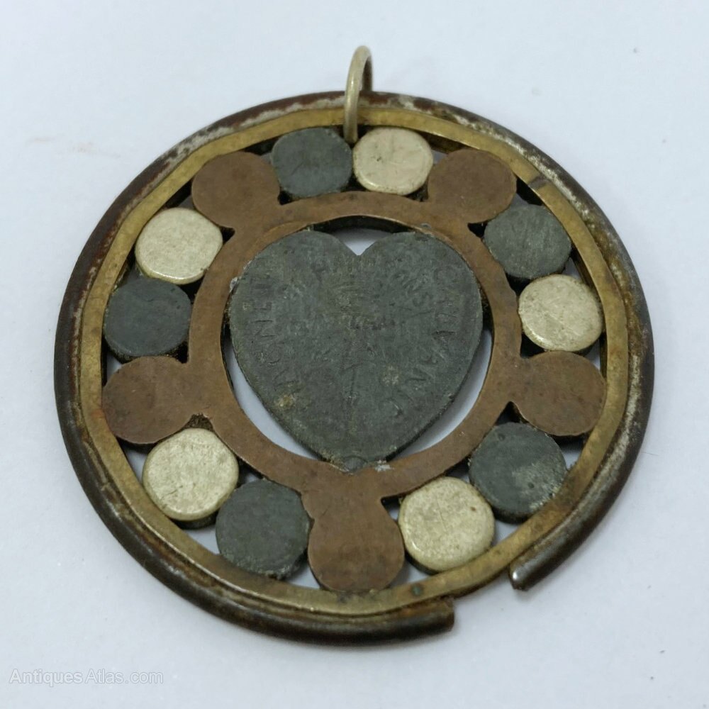 For sale, a Late Victorian Dr Richardson’s Magneto Galvanic BatteryThis fascinating Victorian quack medicine device is formed as a medallion comprised of a mixture of metals including nickel, zinc, copper and brass. The medal has concentric rings of metal with a series of circular discs of metal on the inner circle formed around a heart in the centre. The cross is engraved to the front with, “Richardson’s Magneto Galvanic Battery” with lightning bolt motifs in the remaining space to denote the healing qualities of the electrical effects produced by wearing this medical aid when it is activated through the body’s perspiration.