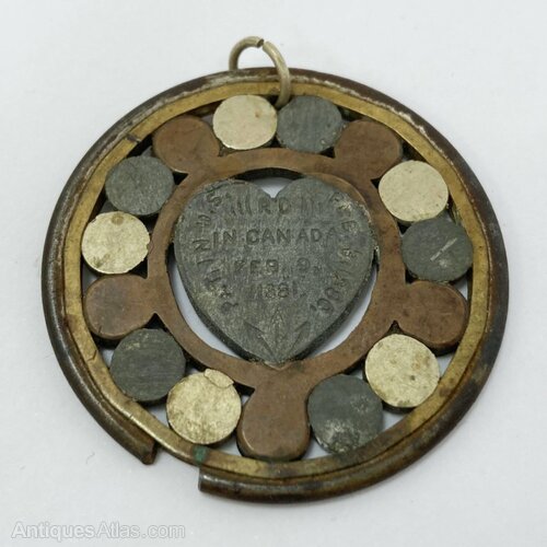 The reverse is further engraved with, “Patented & Registered in US Feb 3 1880 around the edge of the heart and “Registered Design in Canada Feb 9 1881” to the centre with similar surrounding motifs.