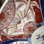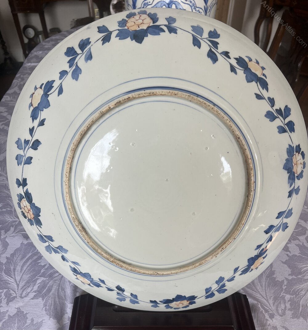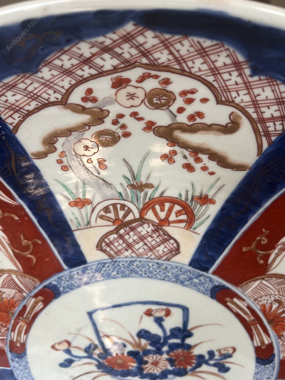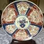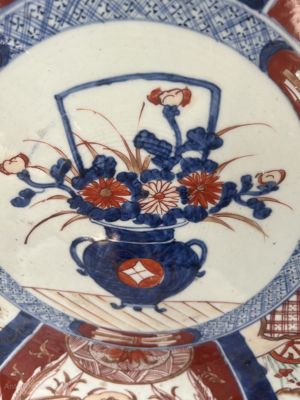 A large 19th.Century Imari Charger. The blue ground panels decorated with clouds, leaves and flowers. The red ground panels decorated with bats and fauna. The centre panel showing a vase of flowers on a table. The whole hand painted in red, blue and green with gilded highlights and the reverse is also decorated. Dimensions:- Diameter…18.25’’/ 46.5cm. Depth…2.3/8’’/ 6cm. Free U.K. delivery on this item.ALL TRADE ENQUIRIES WELCOME.