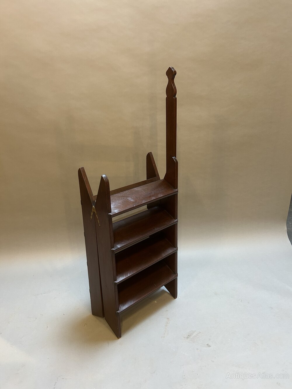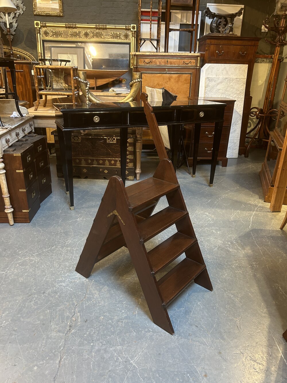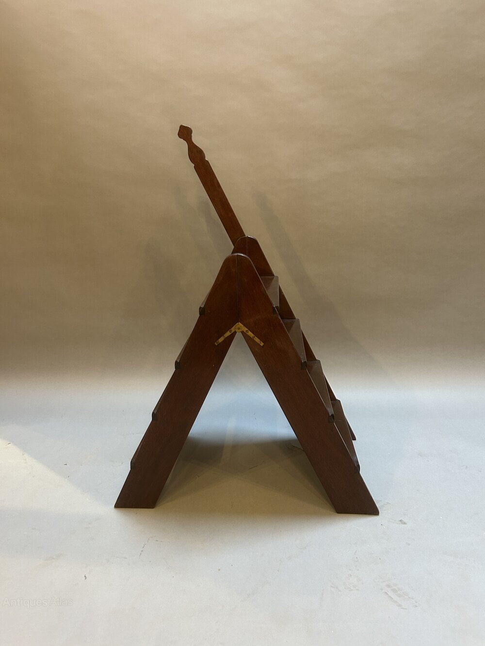 set of vintage mahogany folding steps on flush brass hinges with extended handle (height 110cm)45h x 76 x44