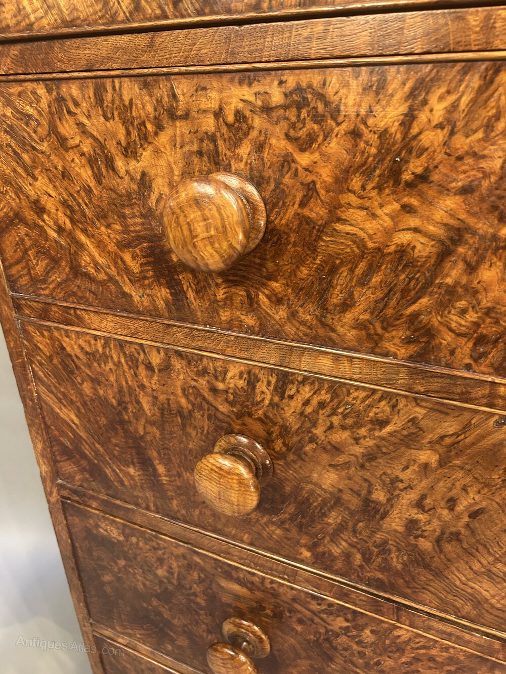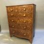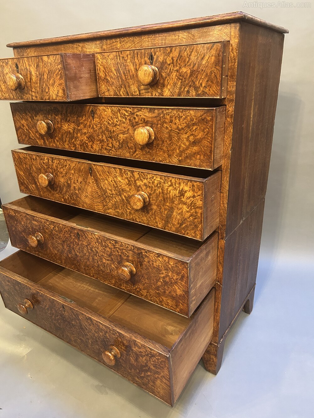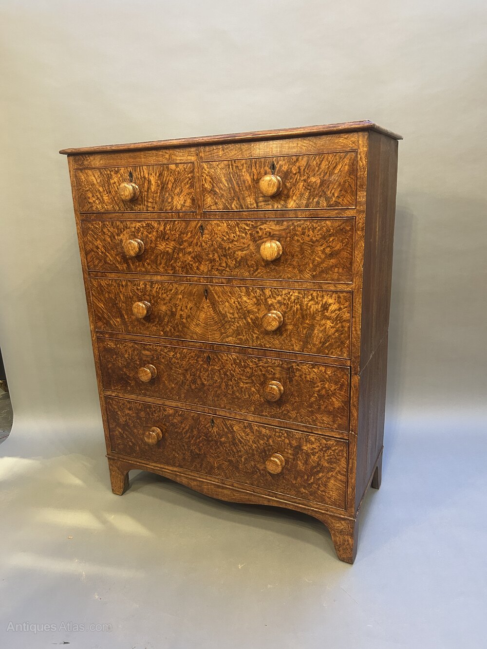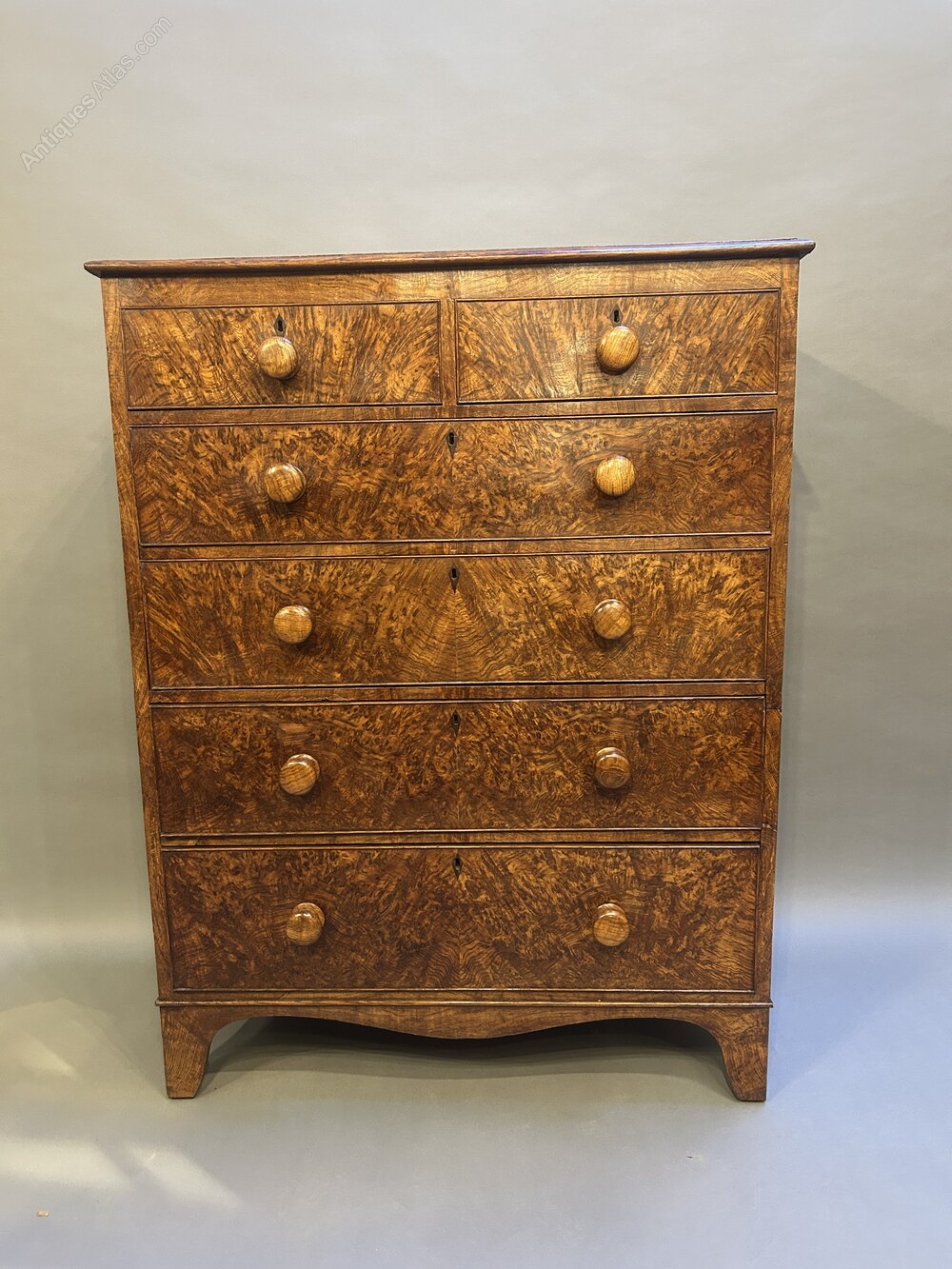 Early C19th pollard oak of exceptional figure and colour, larger proportions of 2 parts (often referred to as a "cottage chest") 2 short over 4 long graduated drawers (mahogany lined) with diamond escutcheons and corresponding oak knob handles, the whole raised on bracket feet.(evidence of old worm , the chest has been through our work room to ensure it is good and ready to go.)