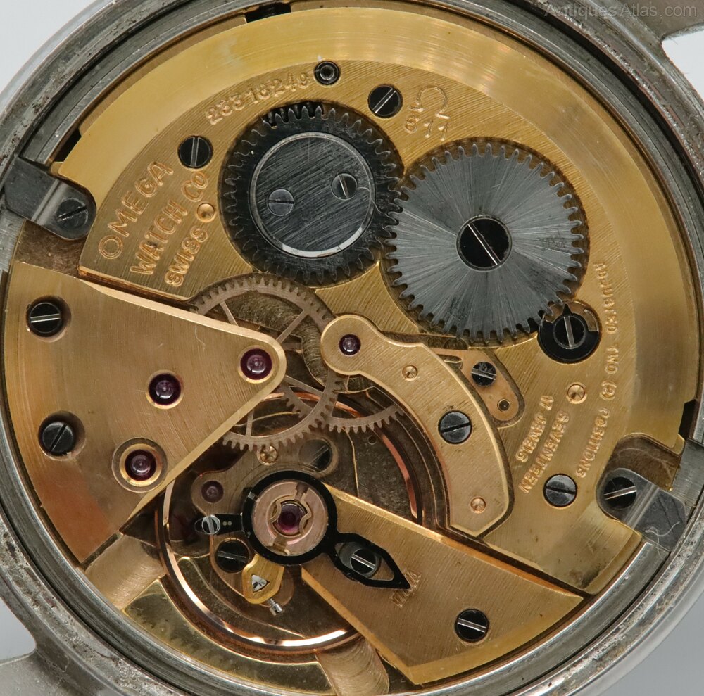 The watch is powered by a 17 jewel Omega caliber 611 manual wind mechanism. Serial numbers date this watch to 1966.