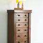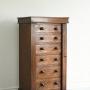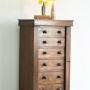 Victorian Oak Wellington Chest. A compact Victorian oak Wellington chest of tall, narrow proportions, designed for secure and practical storage. The chest is fitted with a graduated arrangement of six drawers, each retaining turned wooden knob handles, and is enclosed by a locking side bar, secured with a key. A classic and functional 19th century piece, ideal for a bedroom, hallway, or study.Dimensions: 54cm wide x 40cm deep x 102cm high
