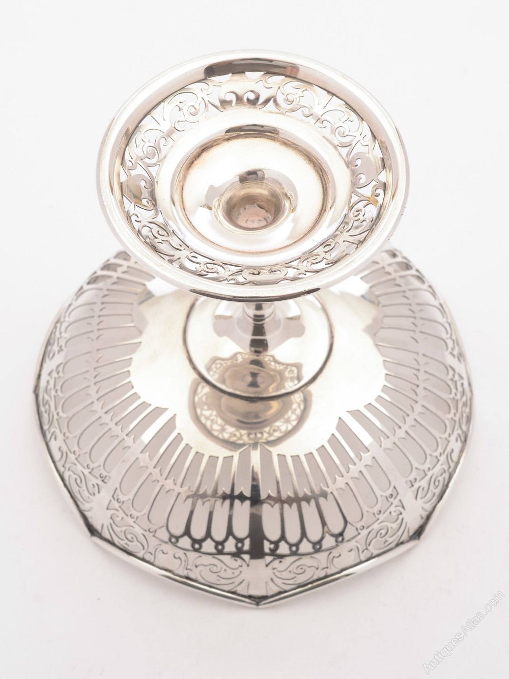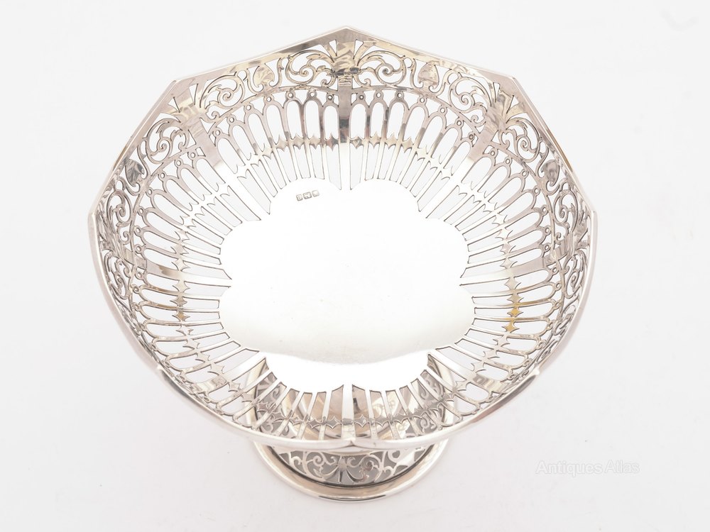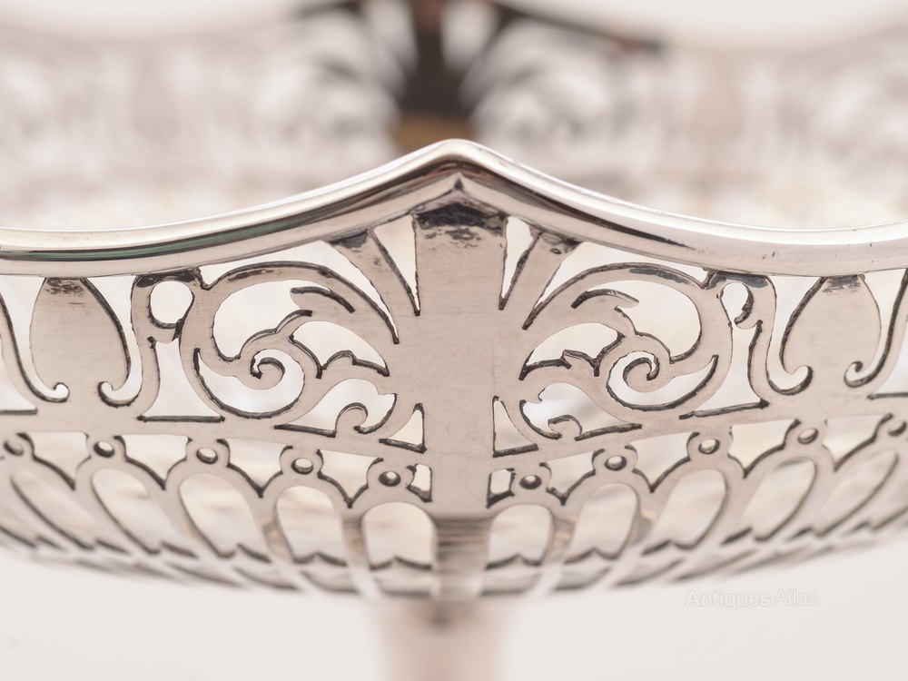A gorgeous English silver tazza with beautiful pierced decoration to top and base. Hallmarked Sheffield 1913.FREE worldwide delivery